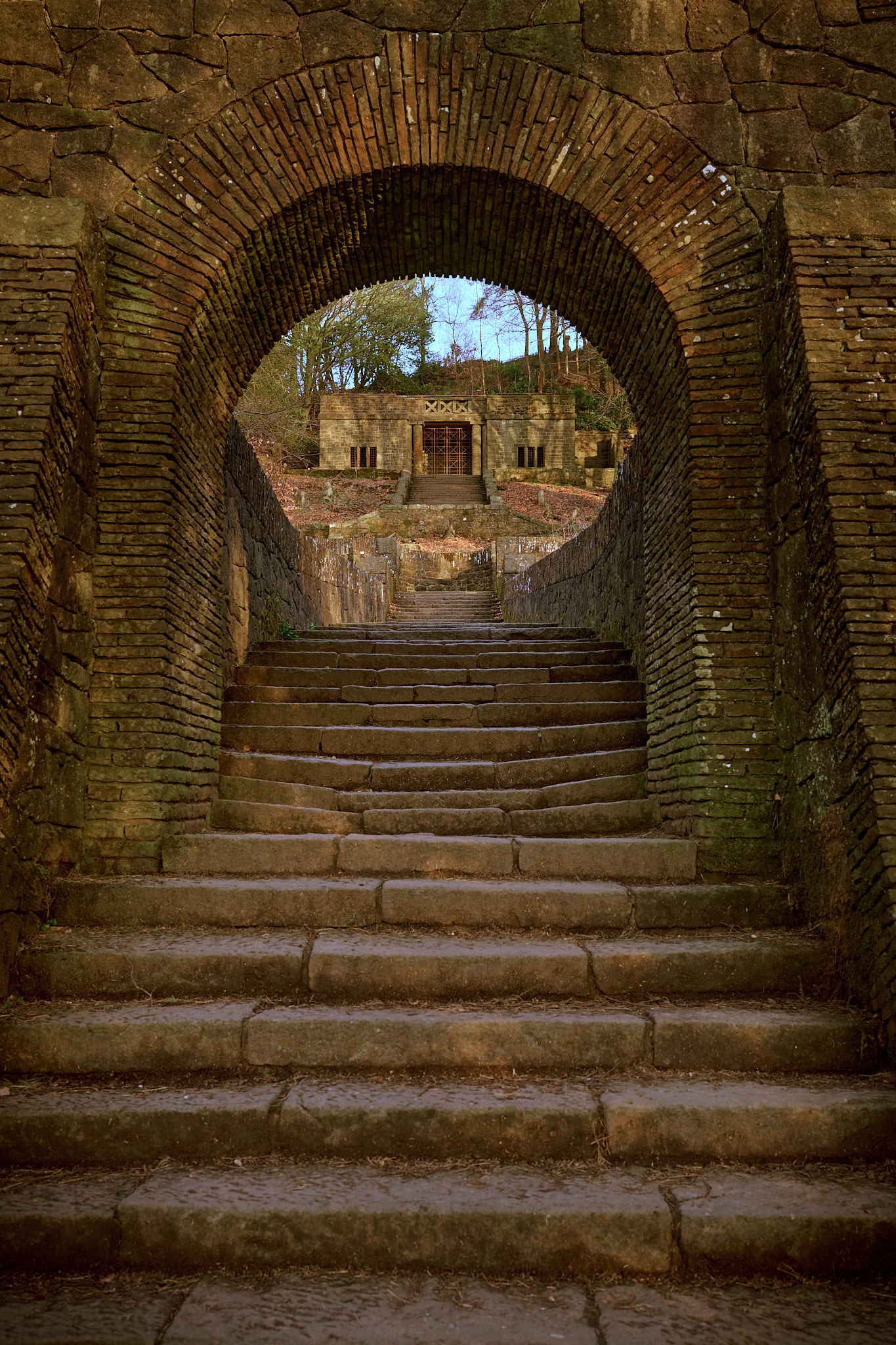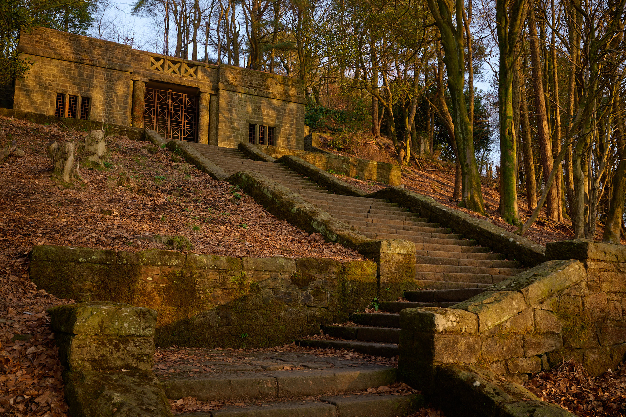 Here, I'm stood at the bottom of Lever's Bridge looking up towards one of the summer houses. I've taken a number of shots from this spot over the years, sometimes including all of the archway, but that tends to lose the summer house in the image, so I chose to frame this a bit tighter, which I think works better. It's also a bit tricky centring the summer house in the archway without ending up with the steps looking a bit wonky, but I think I've done a reasonable job here.