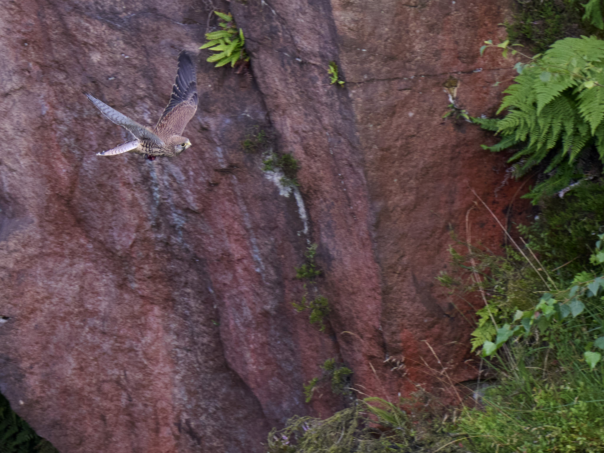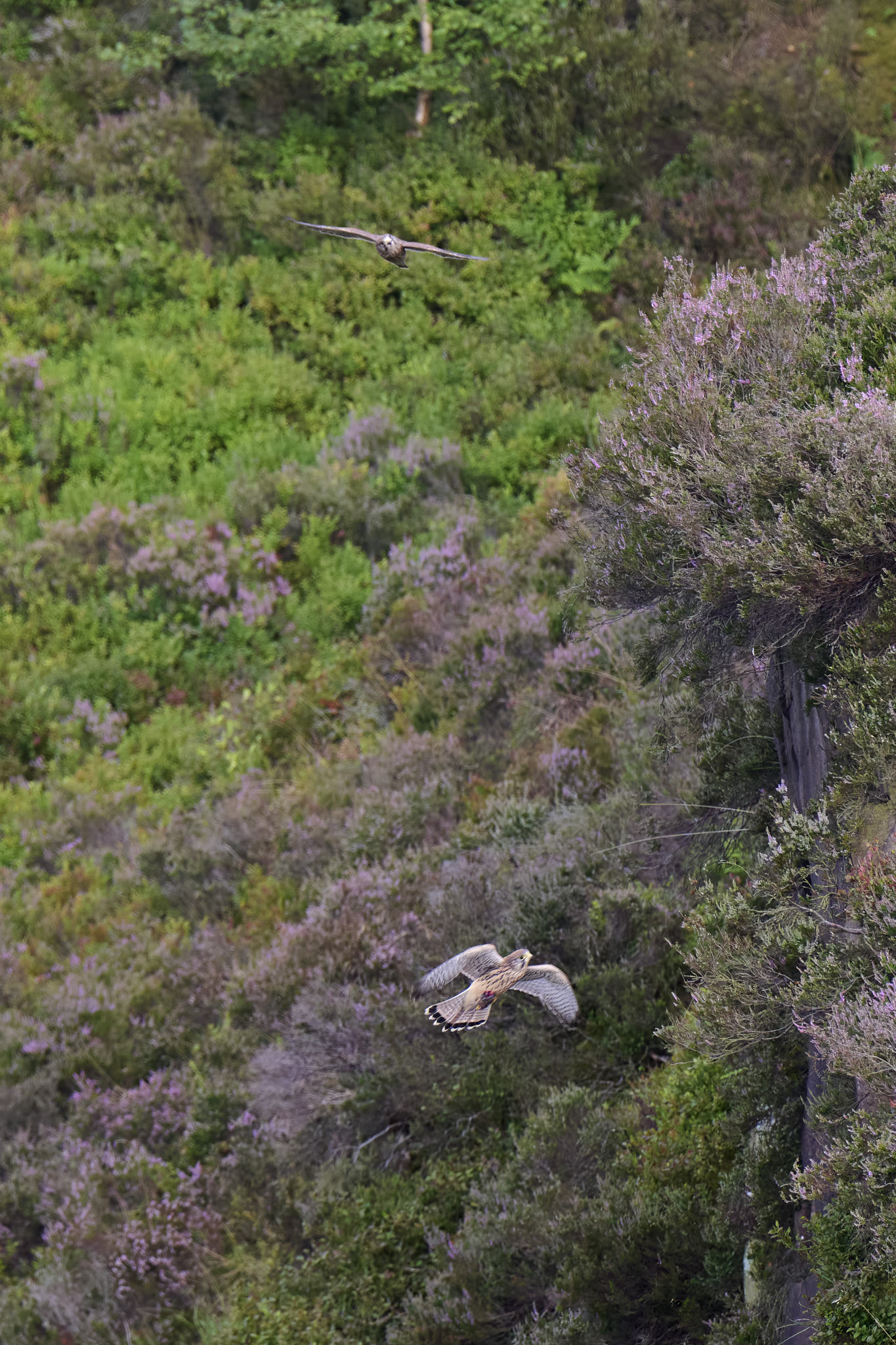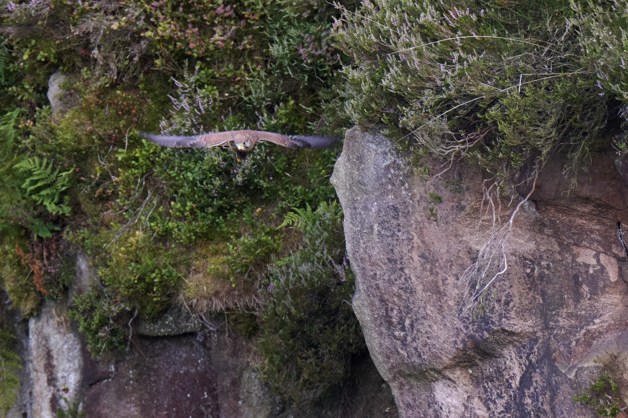 One bird broke off and veered towards the cliff face, heading into the quarry. If you examine the image closely you can see blood on its belly around its legs. At first glance I thought it had been injured, but on closer inspection, it appears its unfortunate victim (some small mammal, a mouse or vole perhaps?) has lost its head.