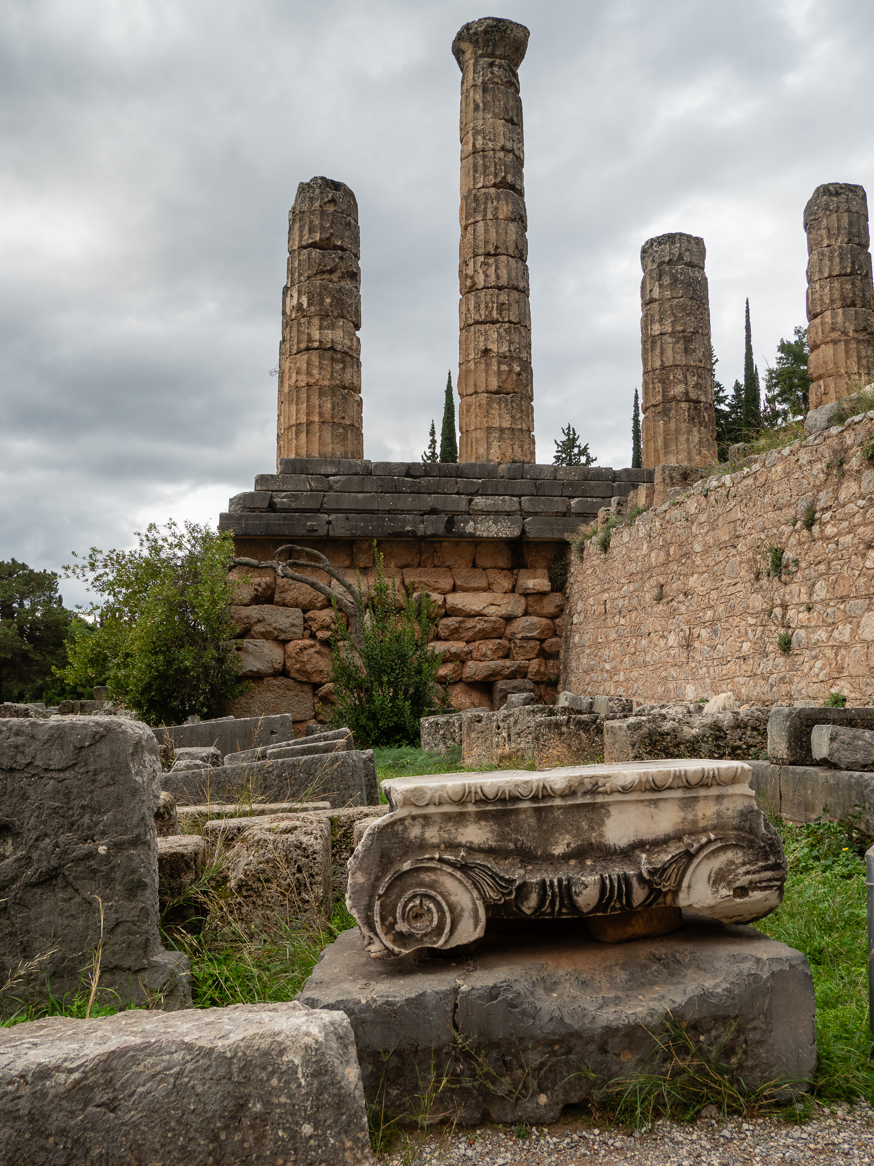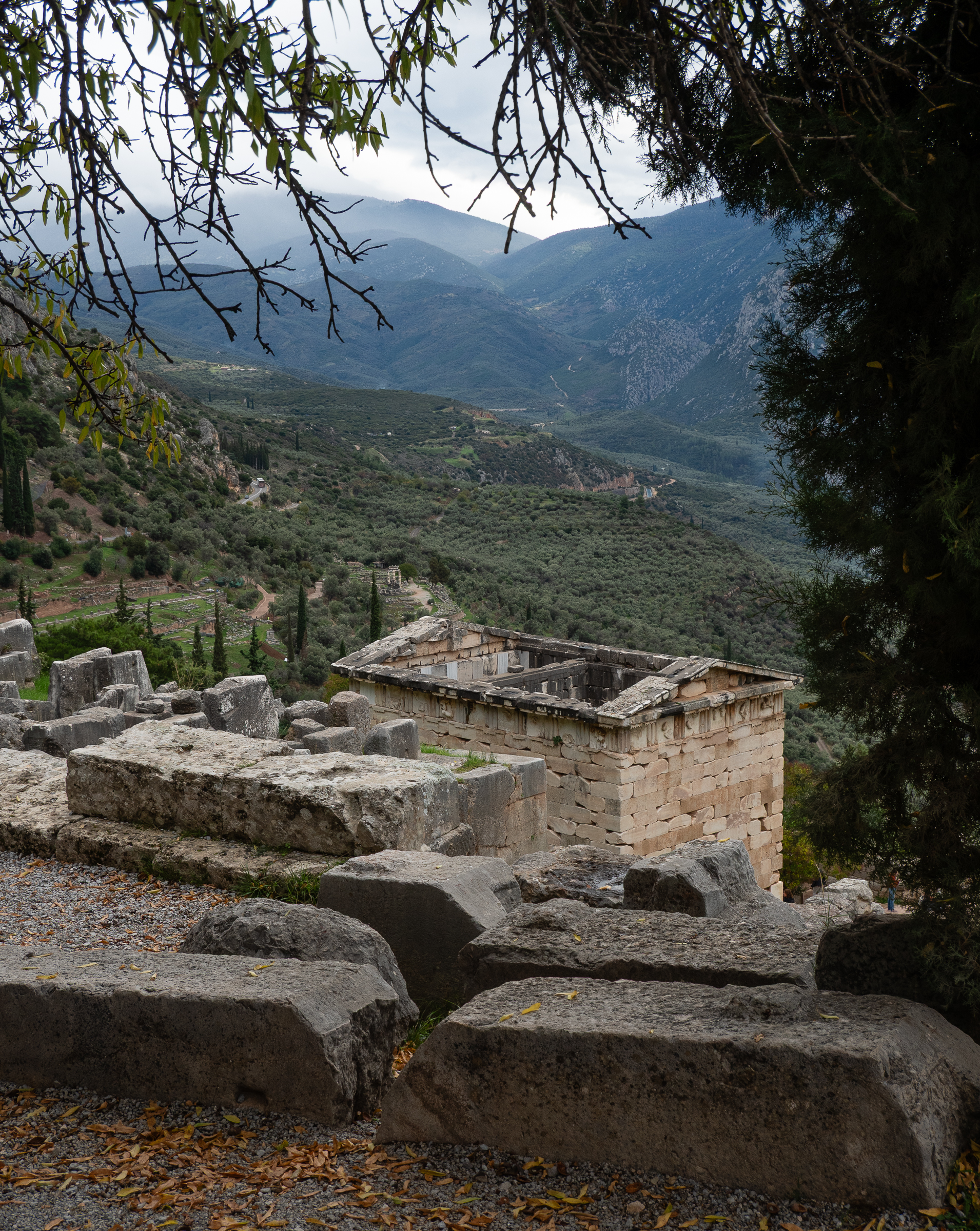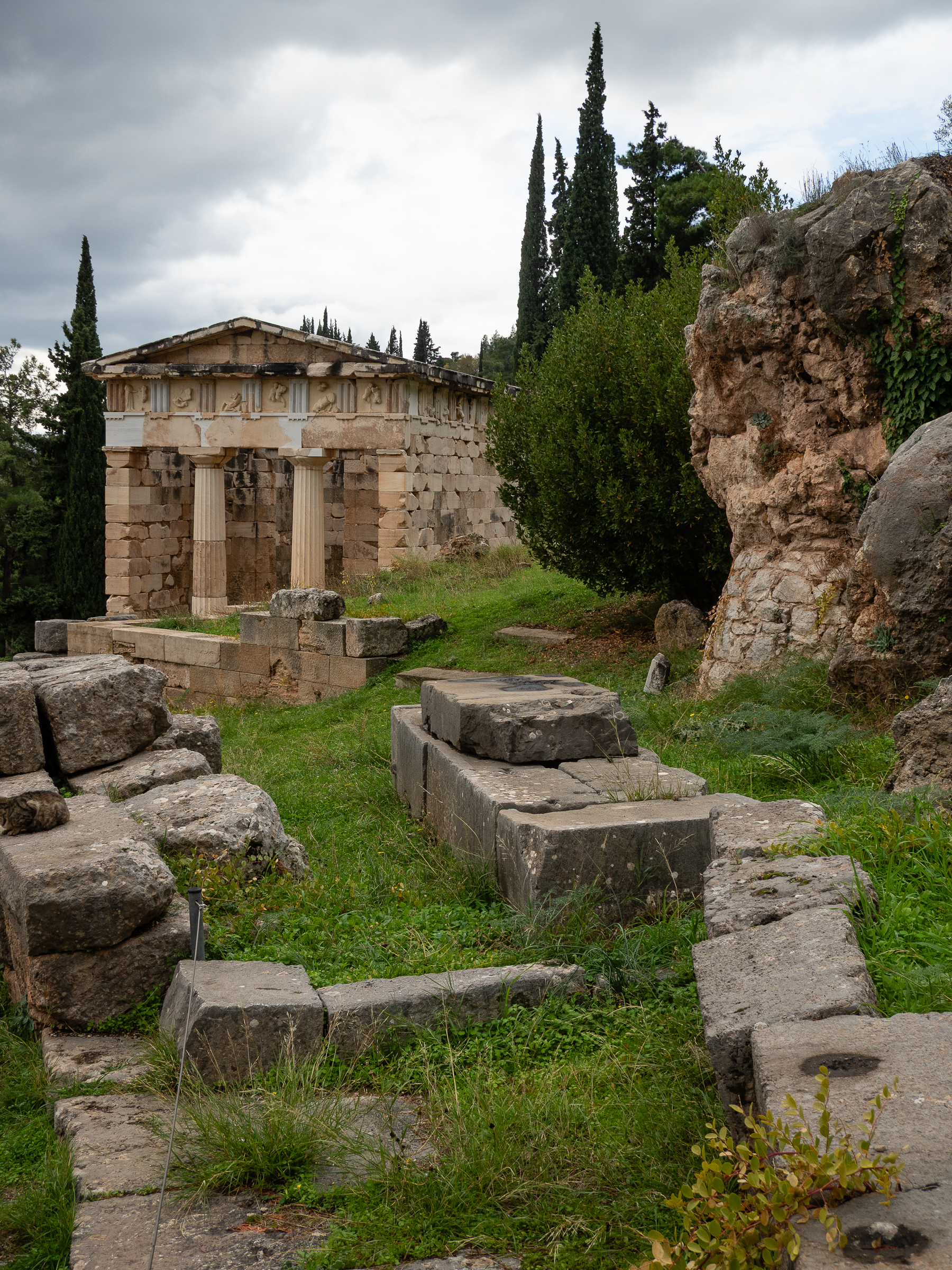 The place was an oddity even in ancient time, not so much a town as a centre of pilgrimage, and was richly endowed with offerings intended to 'placate' (=bribe) the priests and gods. Each city in Greece had its treasury, all crammed with priceless works of art and spoils of war. This one is the Athenian treasury.