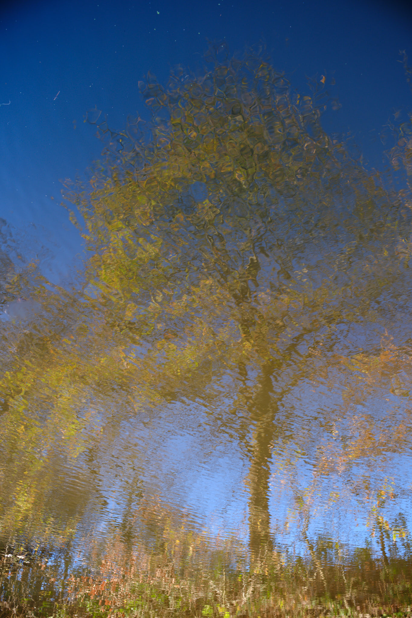 I took an afternoon walk along the nearby canal, shooting all of the usual subjects along the way, such as bridges, barges and bankside foliage. The light was bright and harsh which resulted in a set of unimpressive images that aren't really worth sharing. However, in addition to those subjects, a number of reflections in the waters of the canal caught my eye, the bright colours and gentle ripples on the water giving an impressionistic effect in some of these that I quite like.