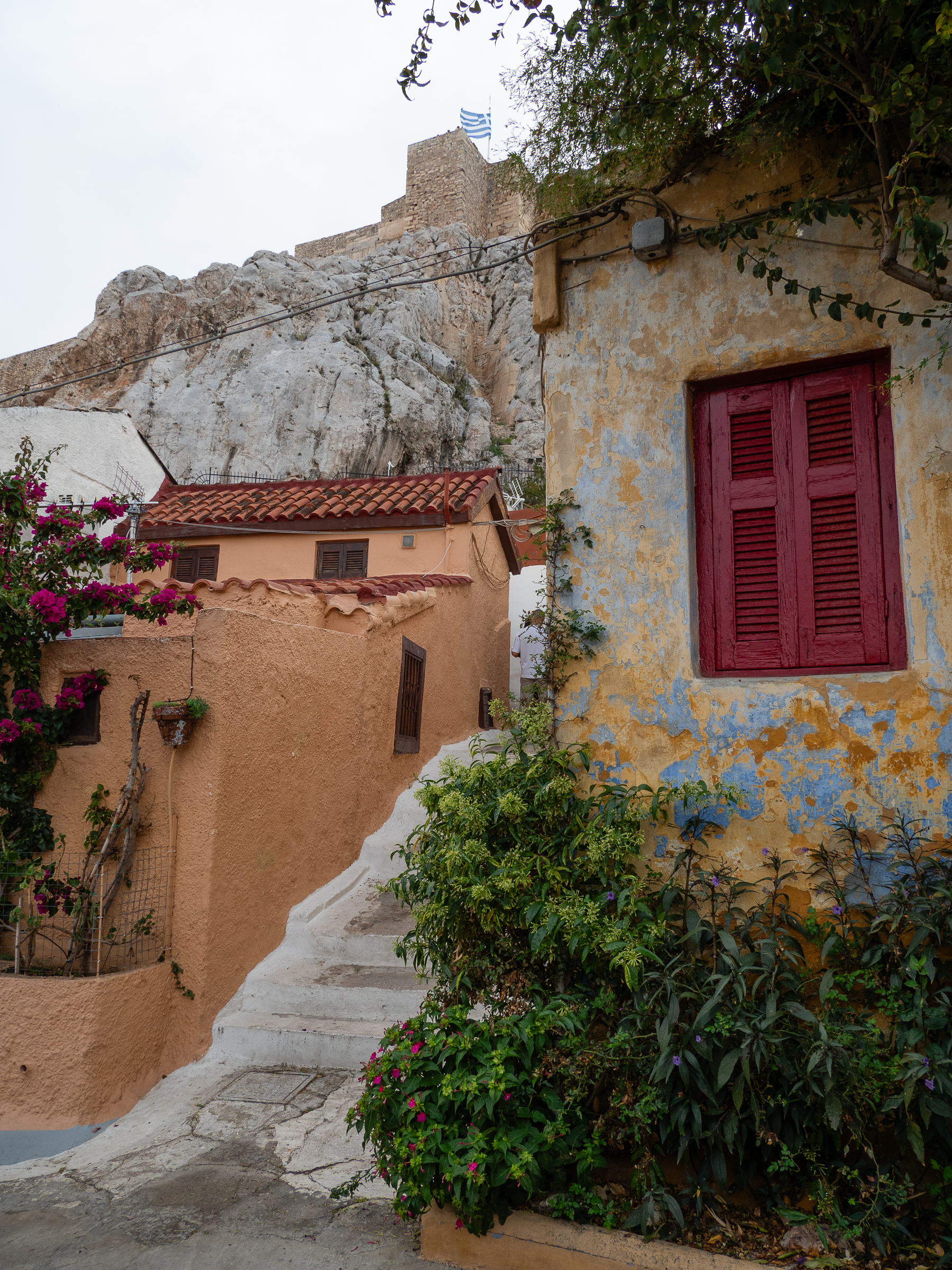 In the shadow of the Acropolis of Athens is a little maze of narrow streets first built by immigrants from the Cyclades, and named after their home island, Anafi. I had explored the lanes of Anafiotika on a previous visit an remembered a particularly photogenic corner I hoped to track down again. Not an easy task in the labyrinthine streets and steps. But there it was, now much more famous with instagrammers and othe 'content creators'.