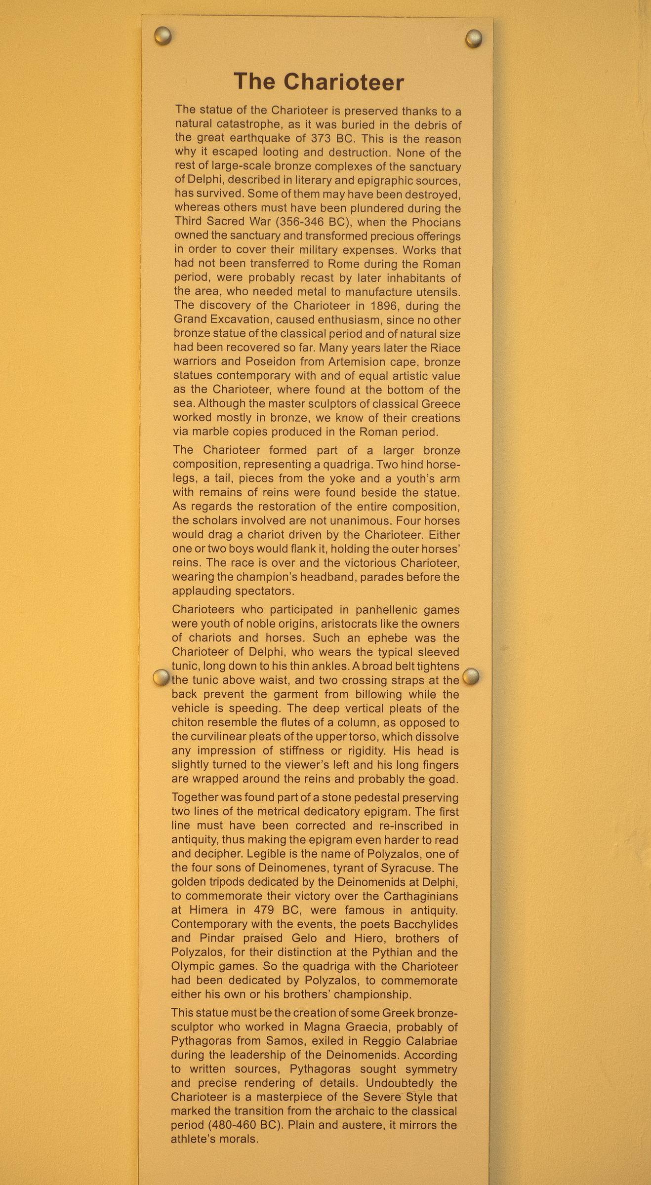 This amazing bronze statue, approximately life size represents the victor in a chariot race. Sadly there are scant remains of his chariot and horse.