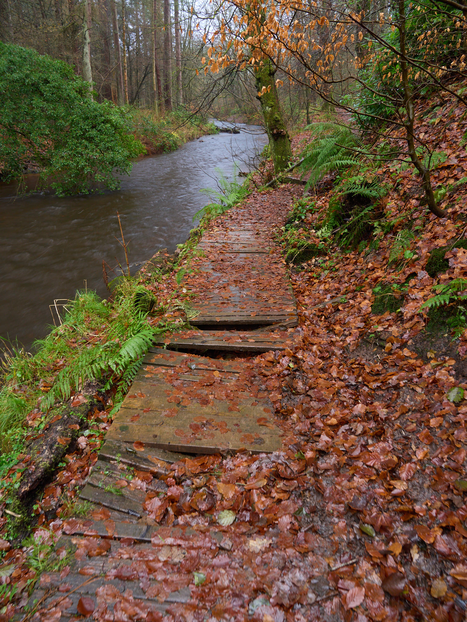 The path this side of the river passes through a number of deep bogs (deep enough to steal your boots at least), but a number of boardwalks have been built over the worst. However, I'm no carpenter, but I suspect these could do with a tiny bit of maintenance.