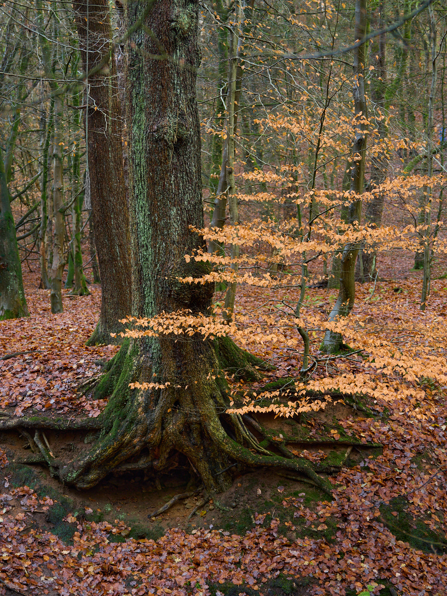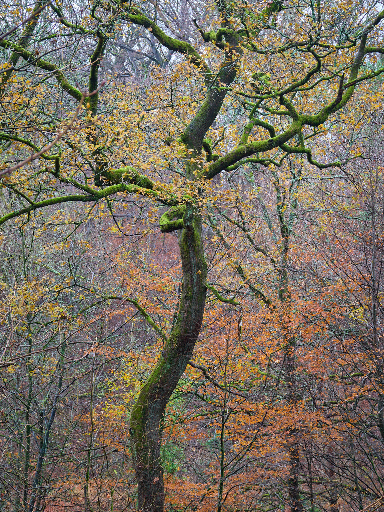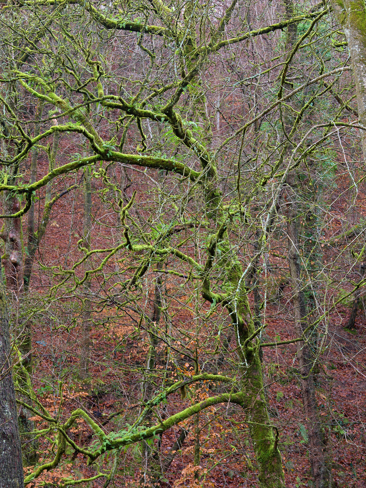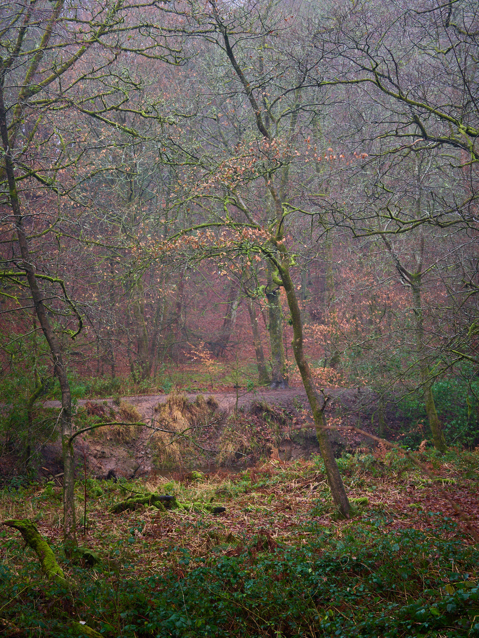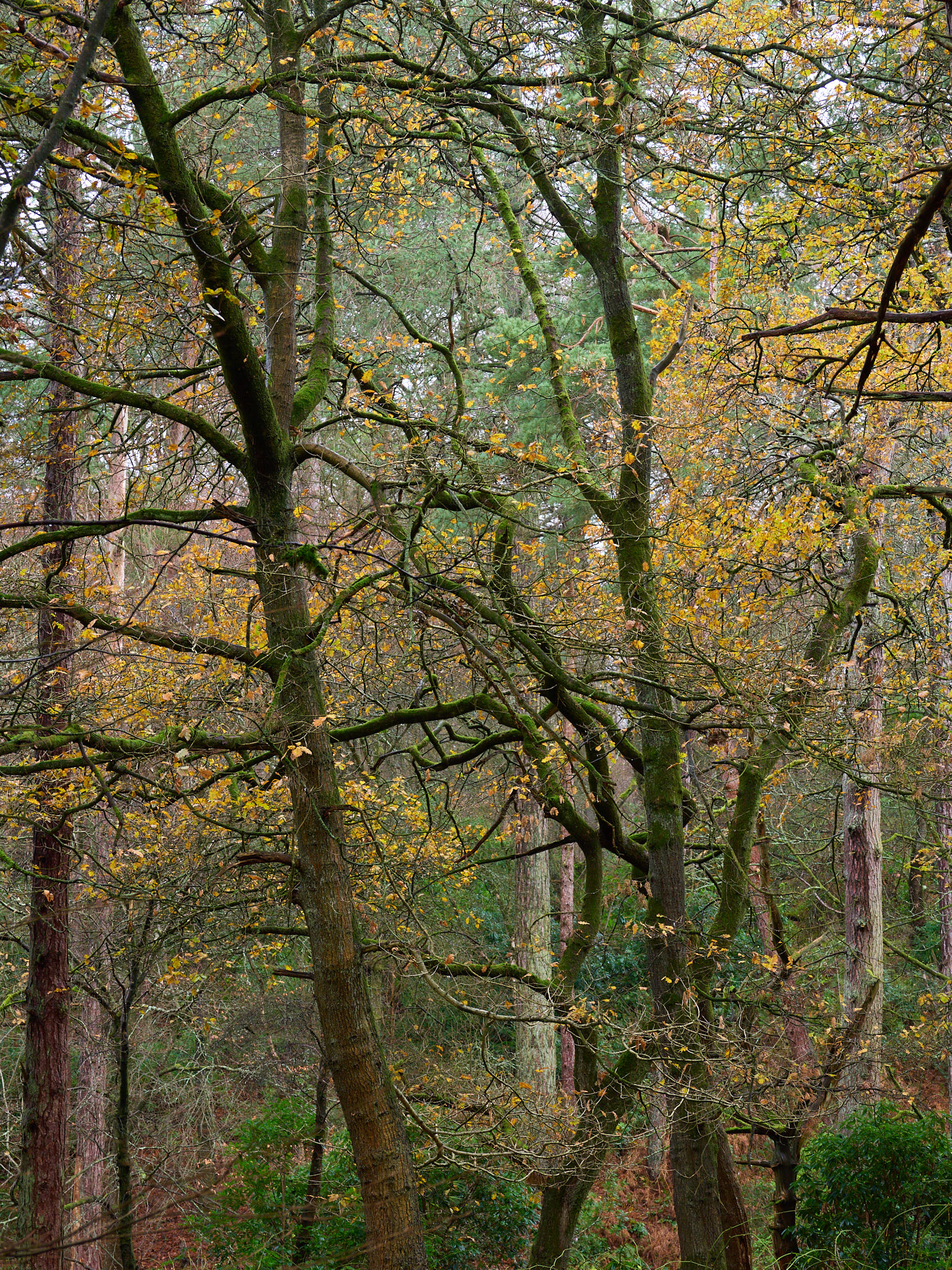 Camera wise, I'd decided to keep it simple and just take the O-M1 paired with the Olympus 12-100 f/4 that has previously joined me in blizzards and rainstorms at the top of many a Lakeland mountain over the years (along with the E-M1 MKII), so I figured a few hours walking in the woods would not pose a challenge to this combination. I even dug out my aging screw fit circular polariser as I suspected the wet surfaces of the trees and whatever leaves remained on them would be reflecting like crazy, which, as it turns it, they were.