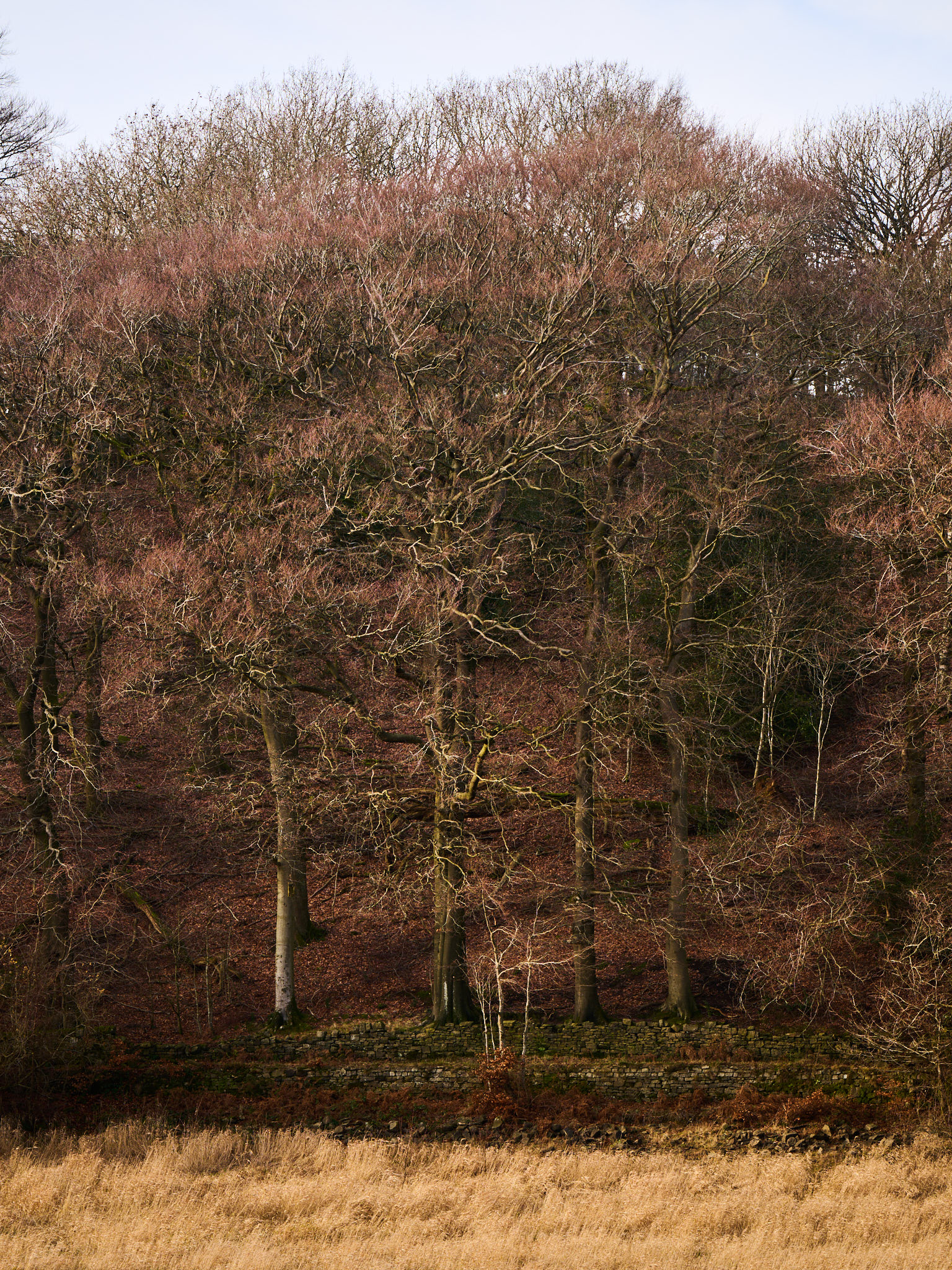 Another shot while I walked along the bottom of the bank, this time there was more direct sun on the trees.