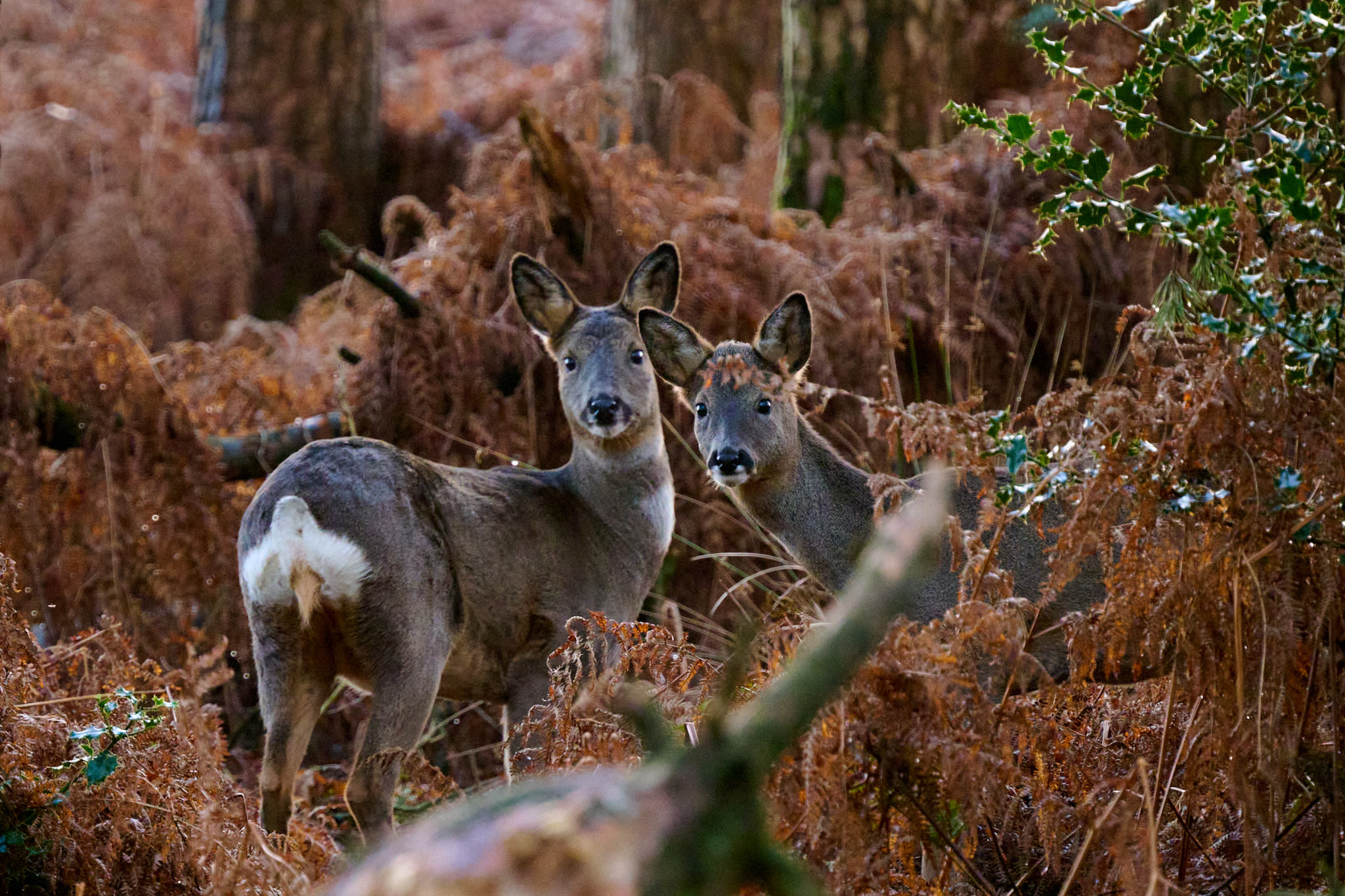 Eventually, she moved a little way to the left of my frame, so I repositioned myself slightly, surprised she still didn't run. As I did, I spotted movement in the bush behind her, followed by another inquisitive face popping out from behind. I think there were at least three doe behind there.