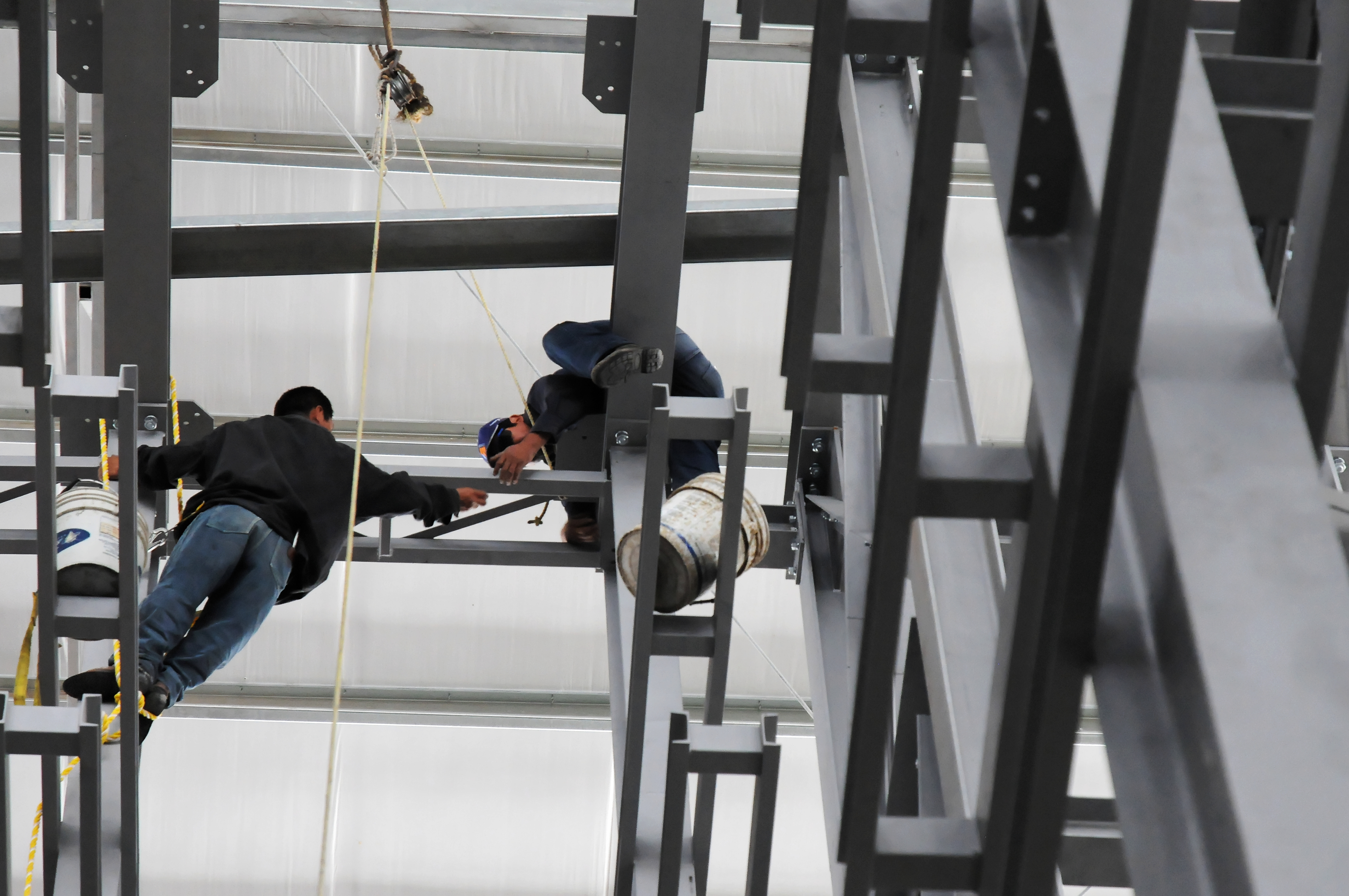 Elf and Safety at work. These guys are high above the ground, in an Automatic Warehouse I engineered.
