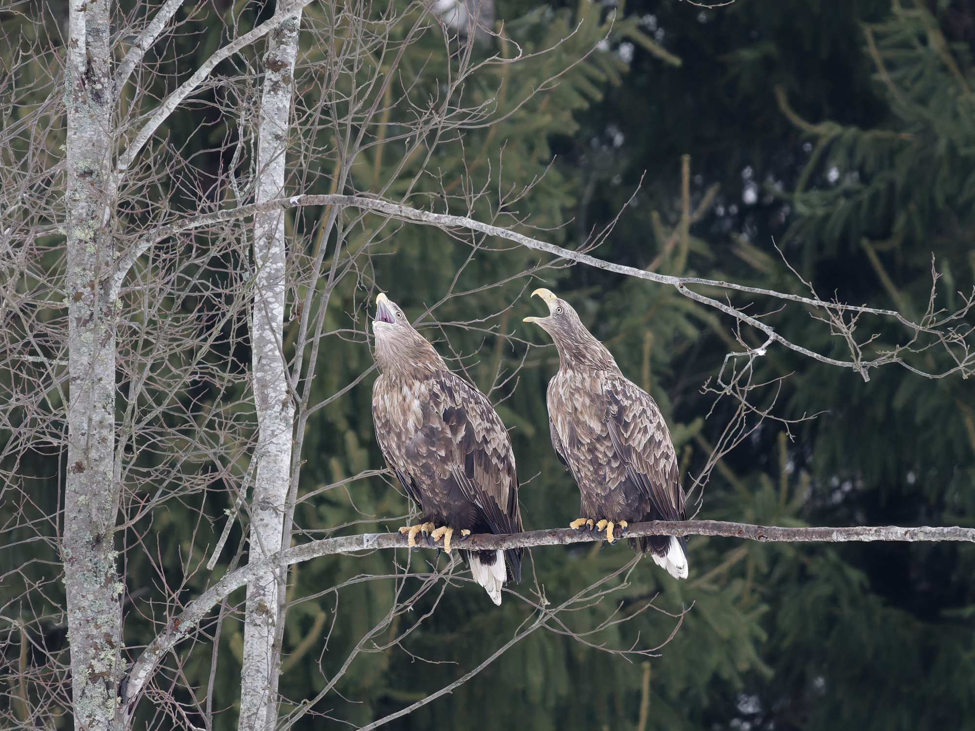 Partner arrived. With white-tailed eagles male eagle (on left) is smaller than female.