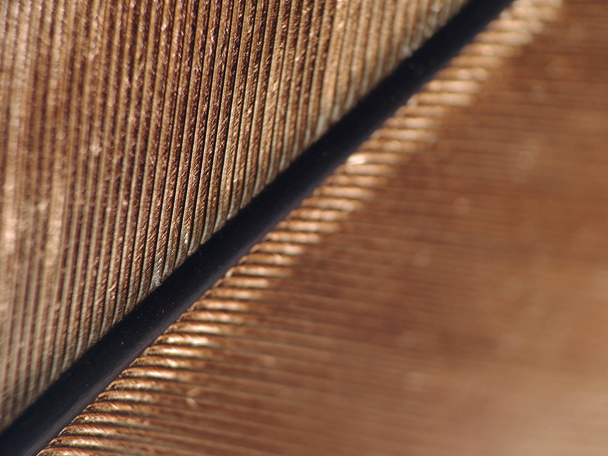 Closeup/abstract of feather. Another wacky optical experiment. Pentax 645Z with Pentax A 120 macro. Also added Raynox 150 + 250 closeup lenses. Not sure how much magnification this is, but it is a lot more than 1:1. ISO 100 F8 .8". In focus area looks sharp. This is a workable combo.