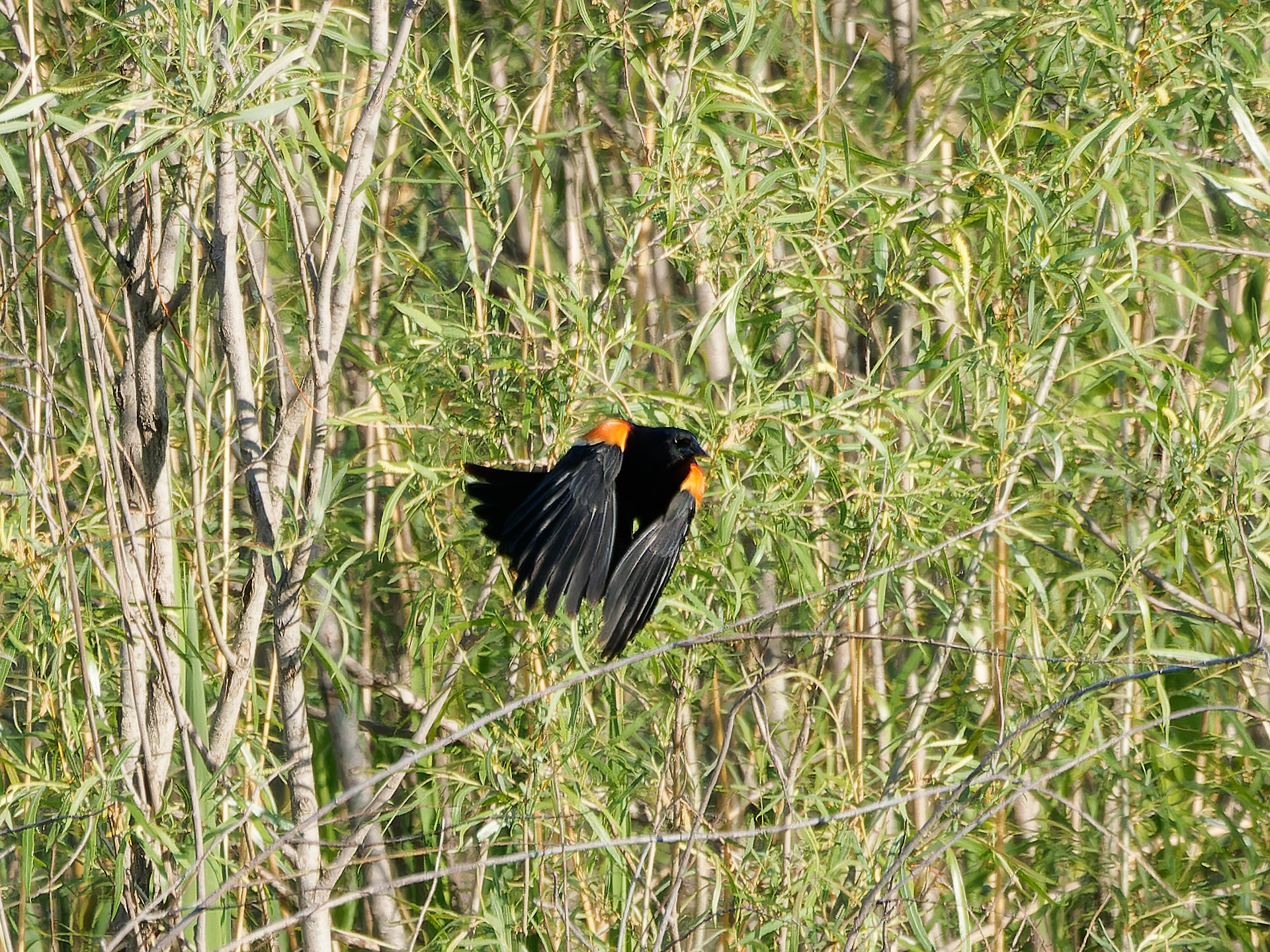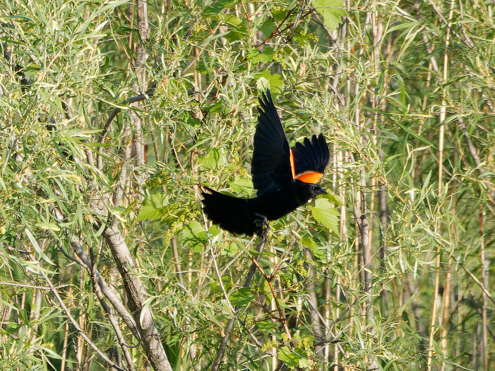 I find it strange how the Red Wing Blackbird's red wing spots look so brilliant red when I see them flying but how the camera sees them as orangish.