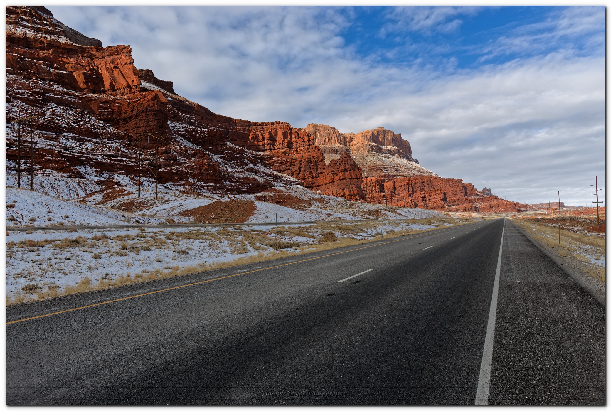 I really like the photo. The lines of the road immediately catch your eye, but I also like the imaginary line that divides the image diagonally. The tones also work very well.