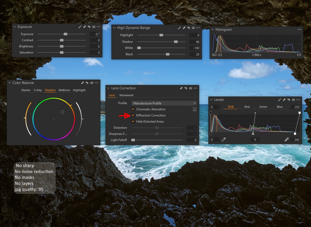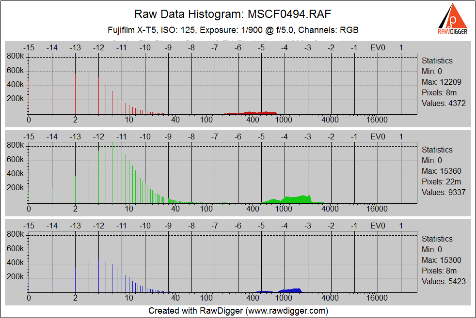 Exported the RAF file from RawDigger as a 16-bit TIFF.