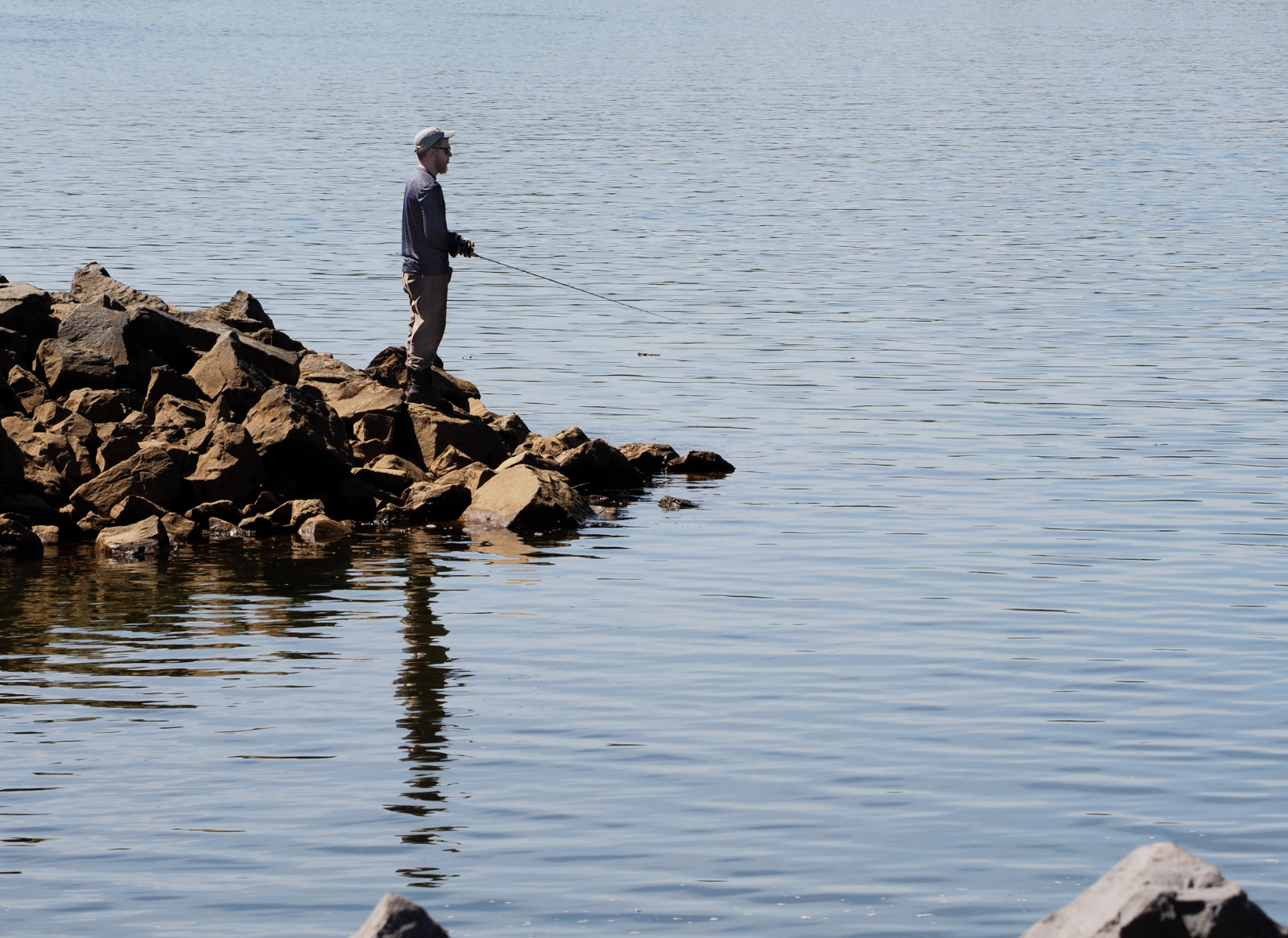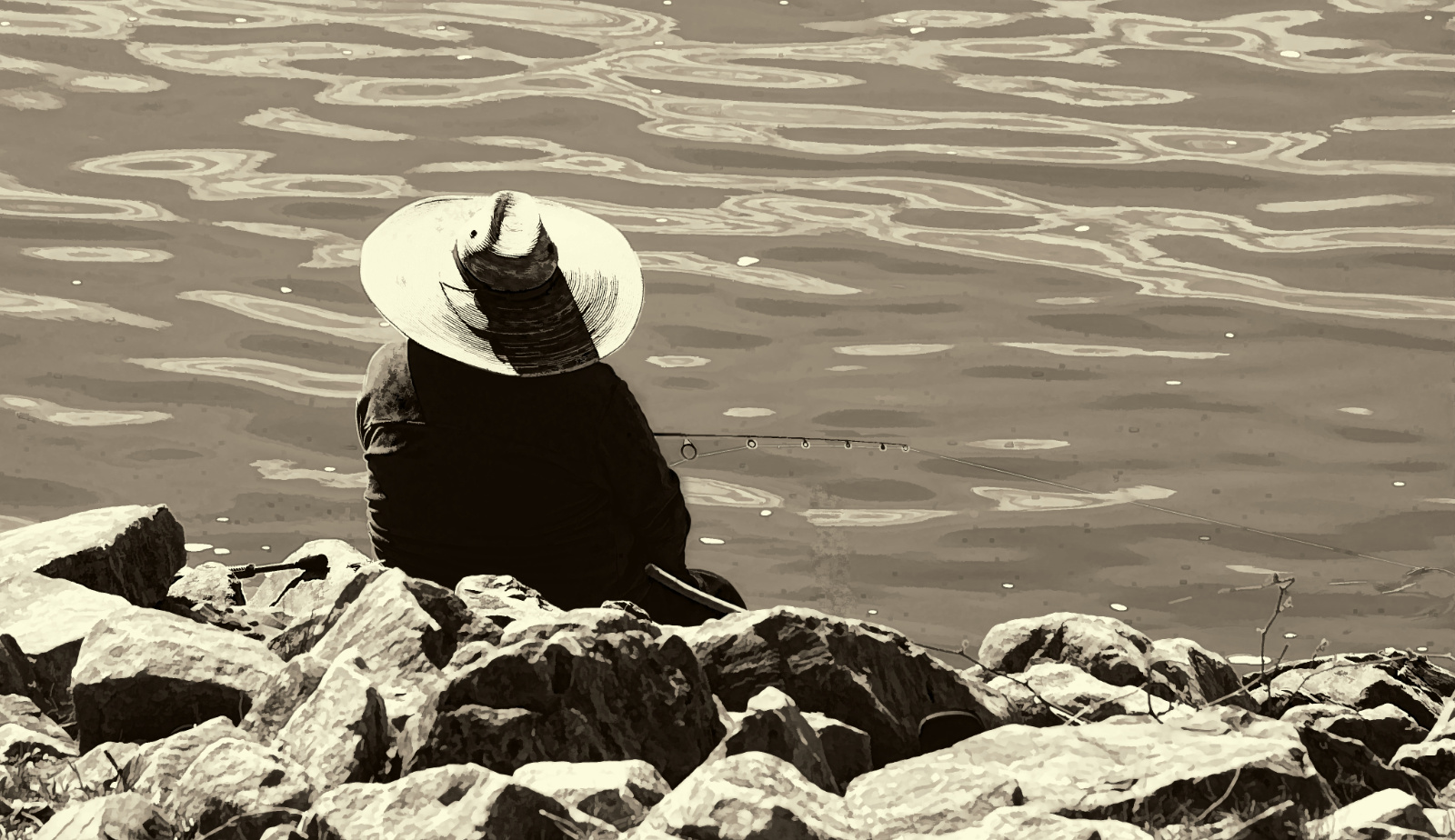 I like the image with the gentleman fishing along the shore. You showed a different version elsewhere that I like the composition of more.