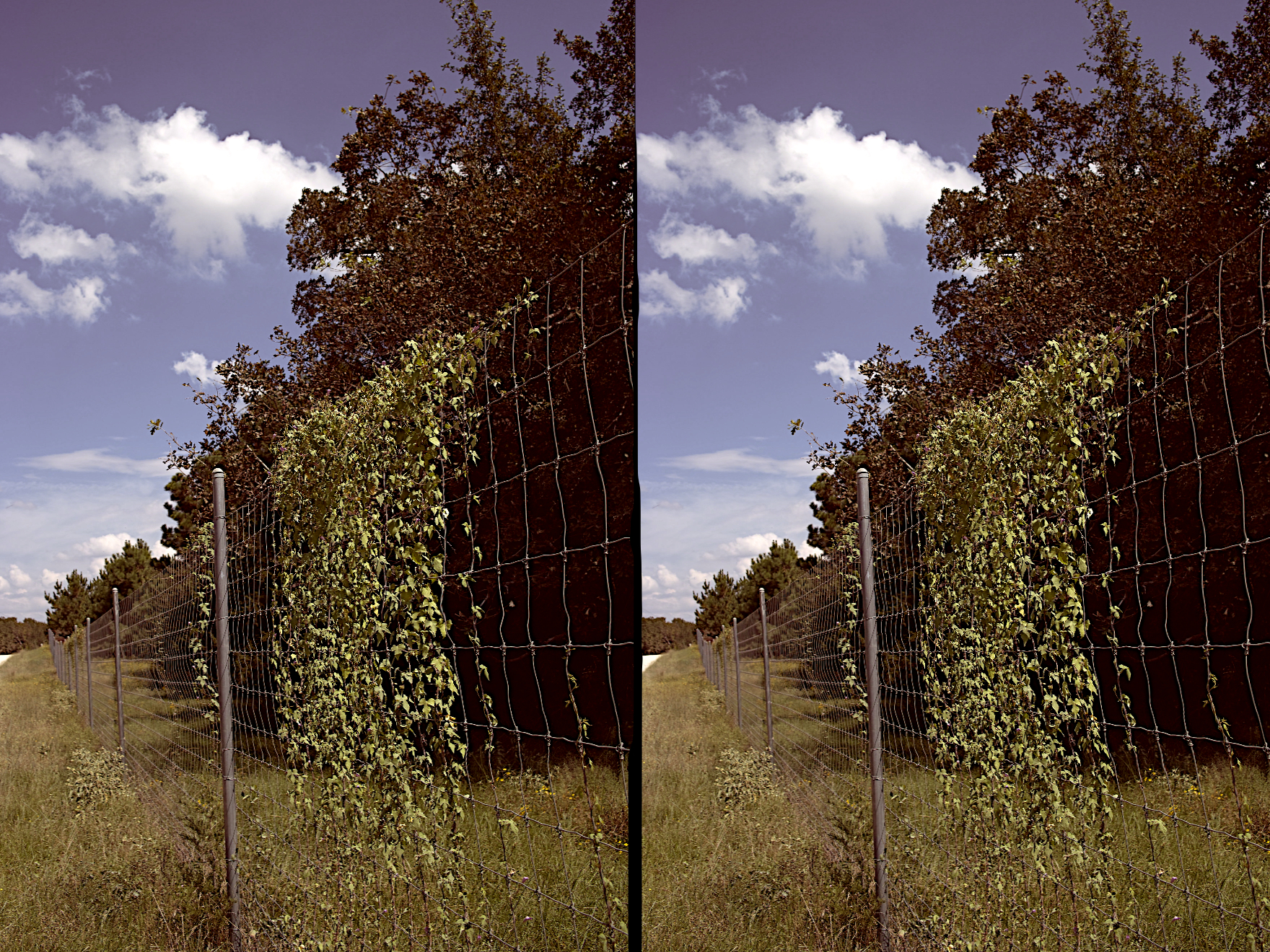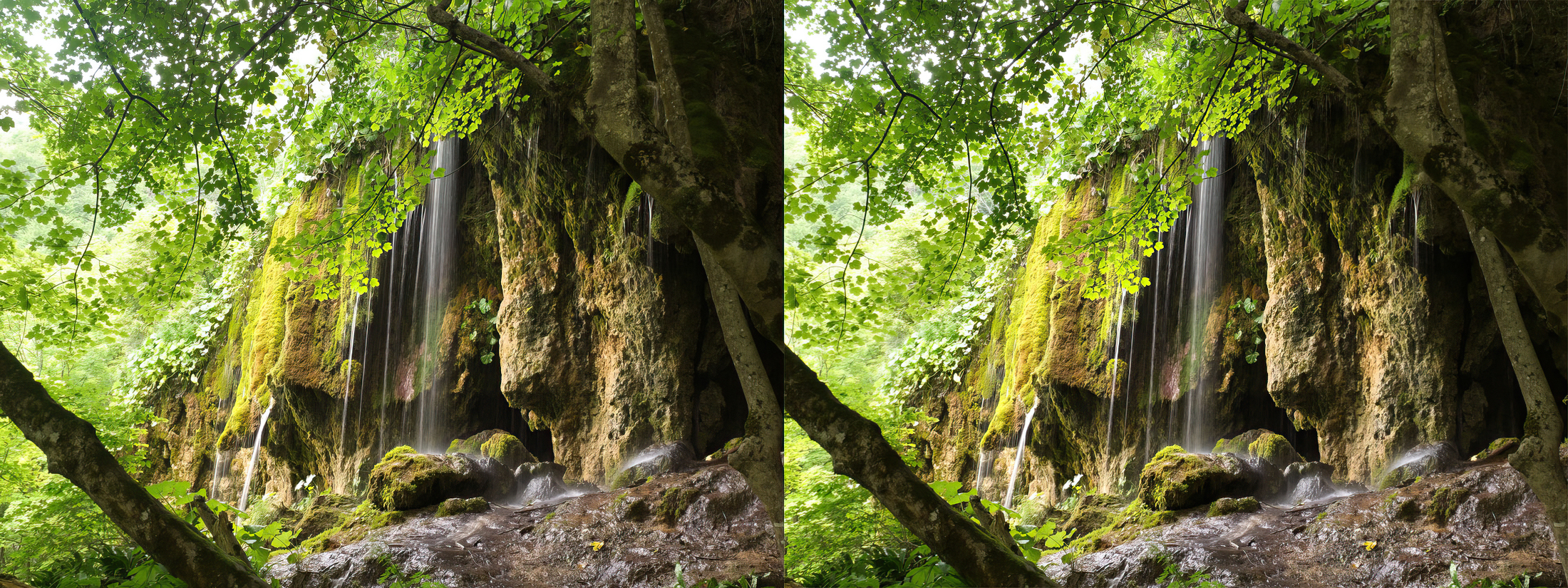 Waterfall on a travertine deposit.(for cross viewing) Taken with 2x Panasonic GH4.
