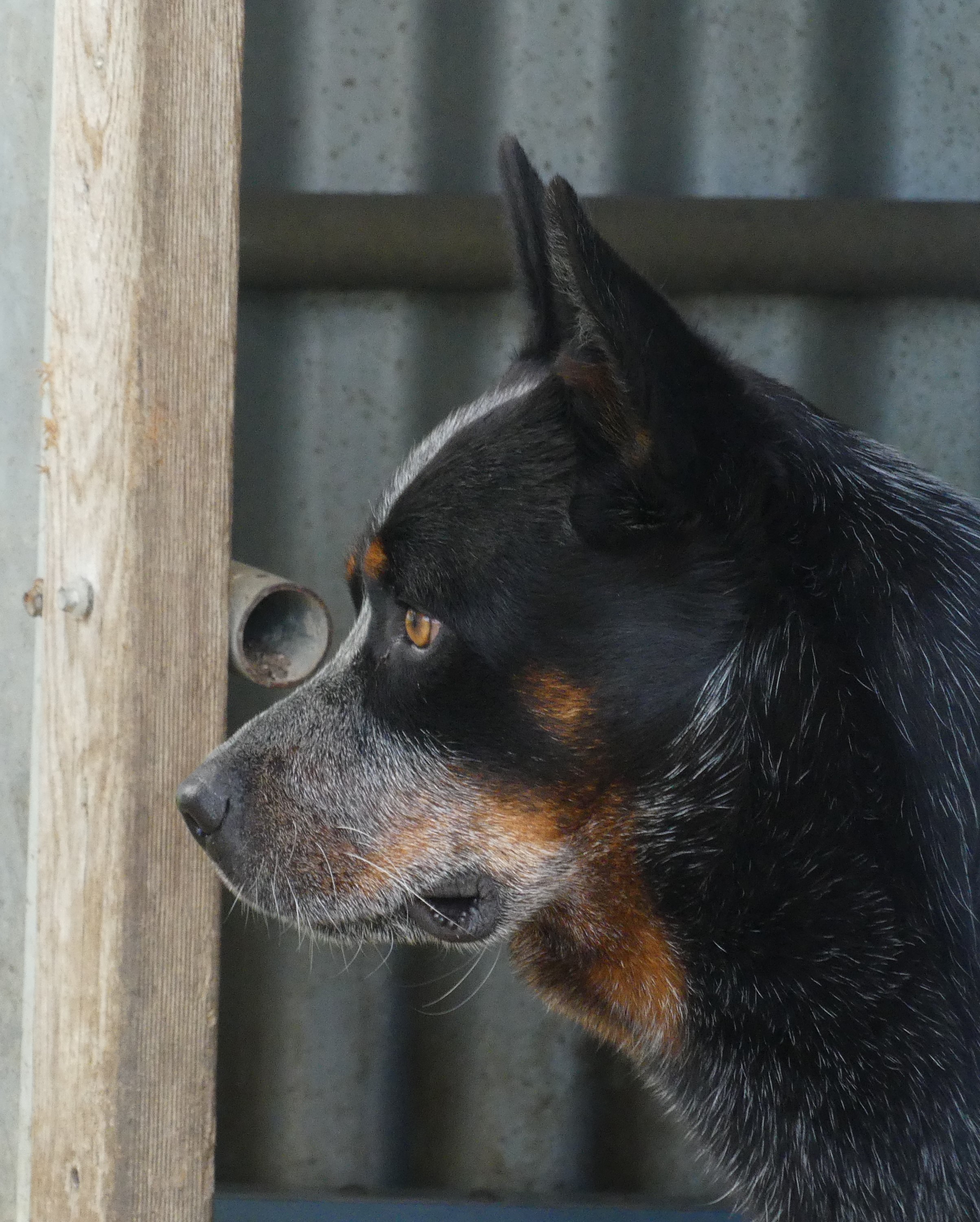 I would have preferred a different background, but then again these dogs are often found on farms. Cropped to remove an over exposed light coloured wall to the right.