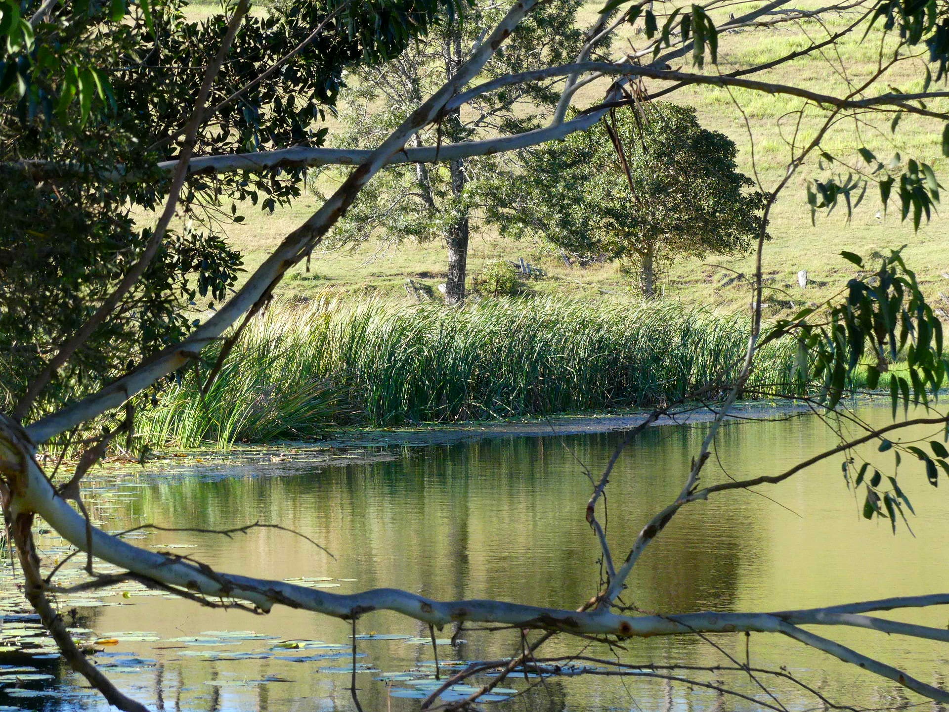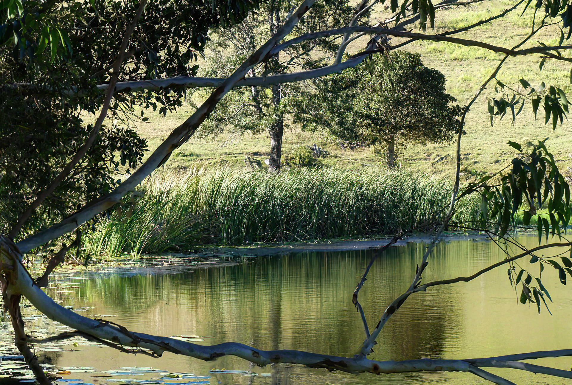 I was down there again with the dogs today (overcast didn't take camera). I could back up a little and zoom in a little for similar shot but will lose a bit. But don't need all of what was in the original. Just the reeds on a still day might be good - and in morning light. I put my vf glasses on and saw quite a few shots that may be interesting. More single subject oriented. Australian farms / bush can be pretty drab though. Also up the hill is a good panorama opportunity.