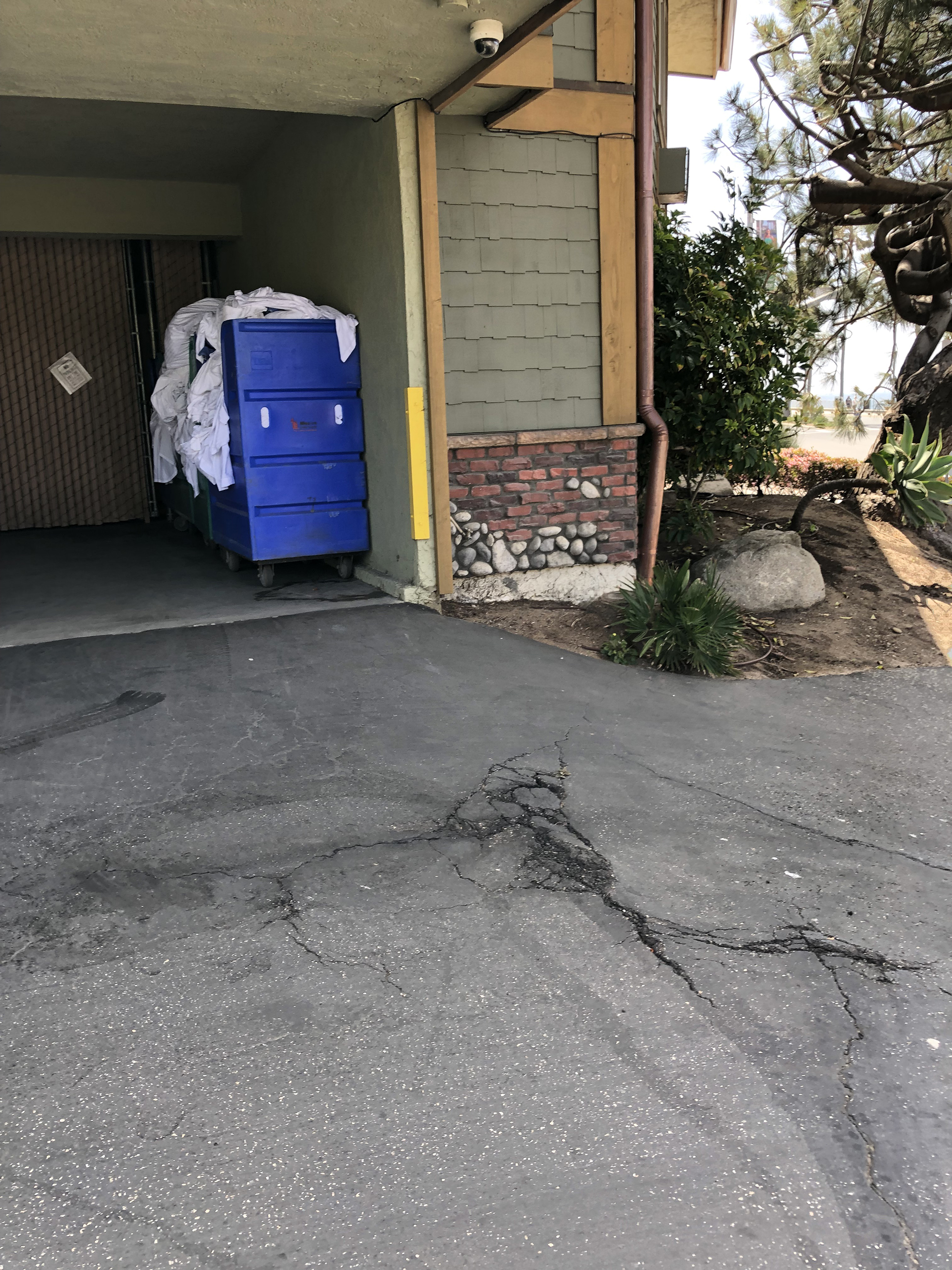 . . . and a more prosaic view of the scene. You take what you get. Different day, different dumpster.