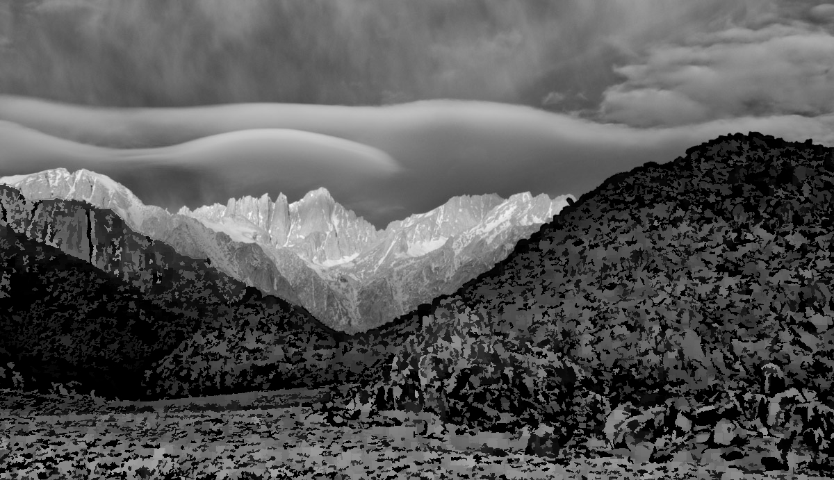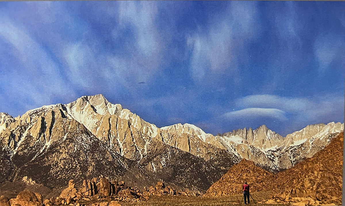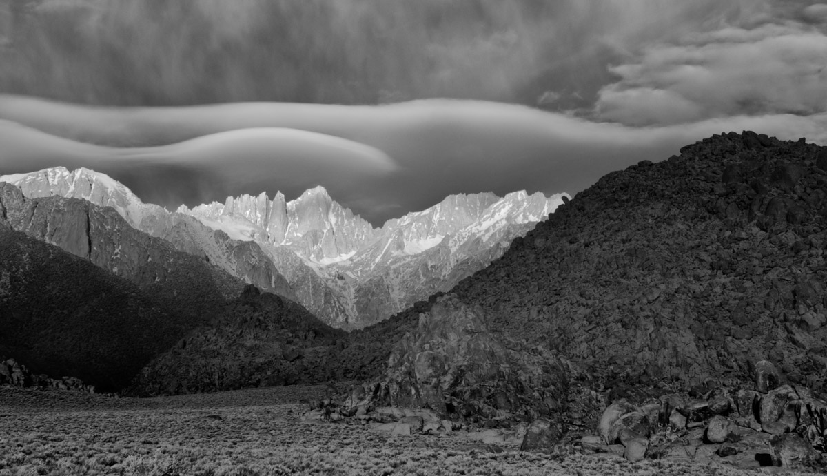 Since this is an interpretation of the landscape I am looking for a meaning or idea … and haven't decided on one yet .. I think that since you took liberties with those lenticular clouds (generally we only see the top of the wave) that you would have abstracted the foreground more to give an idealize landscape ... I'd go somewhere like this .... but I may presume to much ..... sorry about that ....