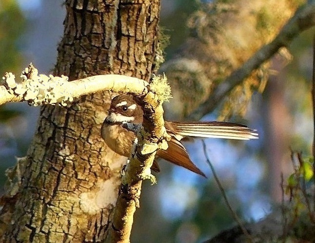 Like with last week's parakeet (or whatever that bird was), I would be tempted to crop in close on this one. The background is OK (with the contrasting blue colour) but not essential. The crooked branch under which the bird comes looking out, is a bit overexposed (on my monitor). Bringing that down could result in a better overall effect (not the brightness or exposure of the whole image, just of that branch).