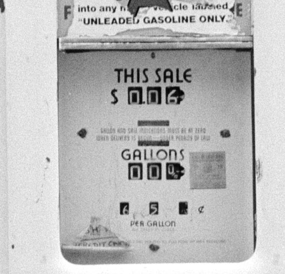 Thank you. I like images that are ambiguous and invite the viewer to make up stories, and this is one of those to me. The person in the phone booth is a guy. You can't see in the the small image I uploaded, but the gas price when the pump was last used was 65 cents a gallon.