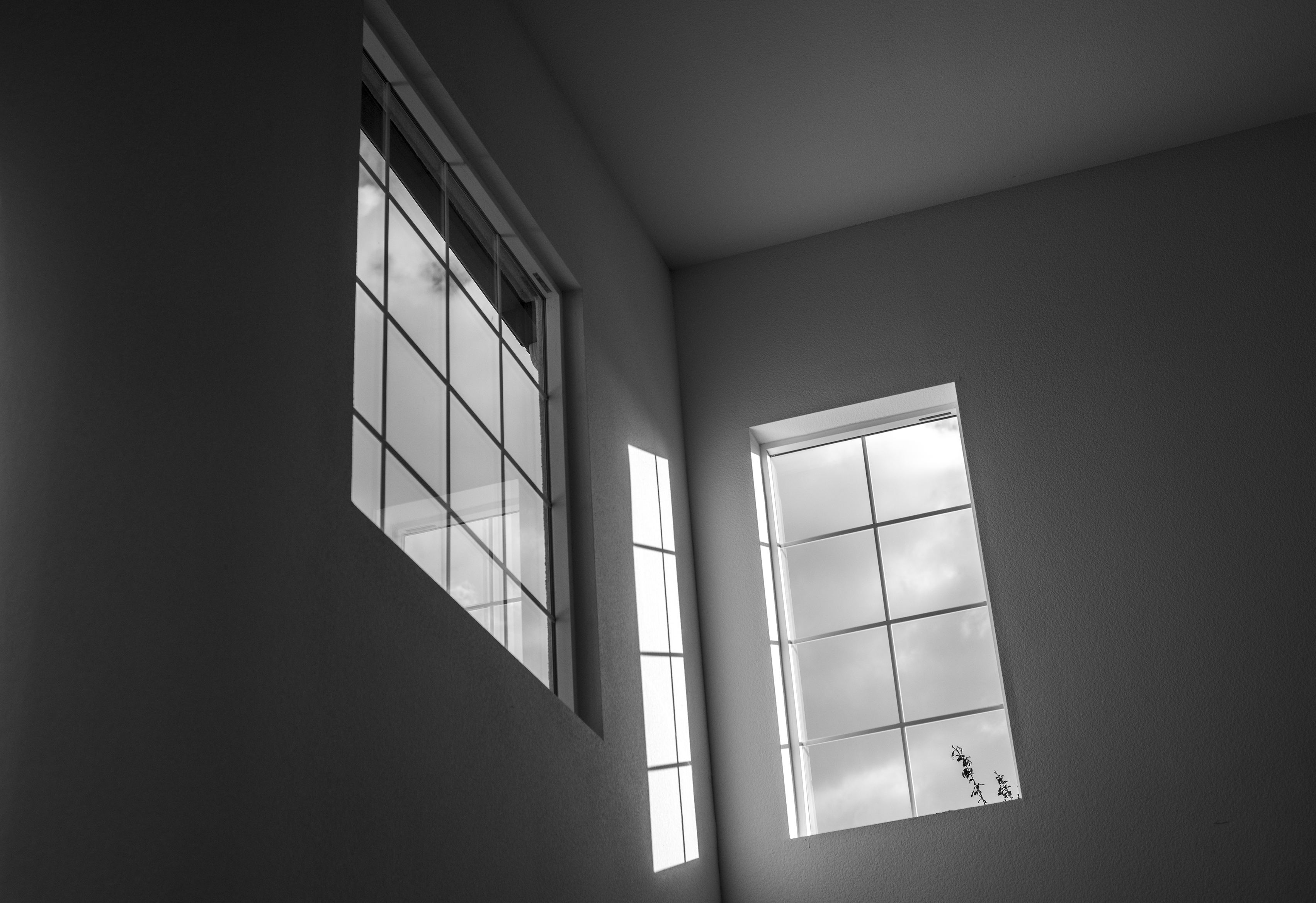 The scene can look extremely confusing and disorienting in 2-D, especially when I don't process it light enough to show the lines of the intersecting walls in the shadow area at the top. I like the color version, but it does work very well in monochrome, in which case, the spatial disorientation effect is greater.