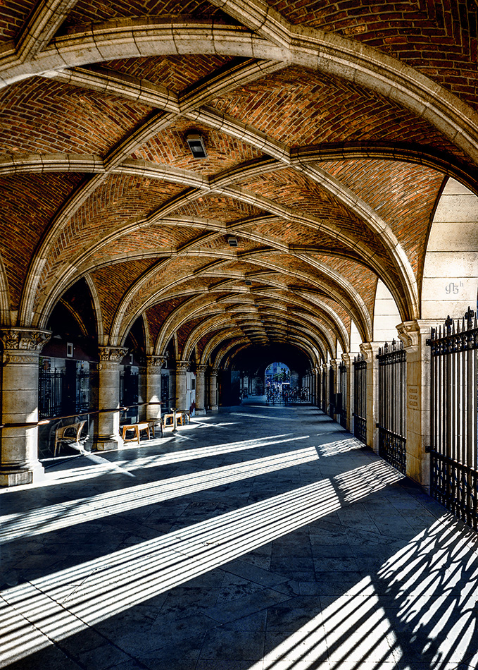 I intended the minimalist composition of this image. The rest of the building just did nothing for it. It's actually a 38" x 22" print on Canon Photo Paper Premium Matte from a Canon Large Format pigment printer. It's behind a white mat with 4" borders, so 48" x 30." No plastic or glass cover. It's a very sharp image (as I've commented earlier). At the large size, in the mat, the image is quite a bit more compelling "in person" than seen here in its JPG version. IMHO it comes across better as the graphic I hoped it to be.