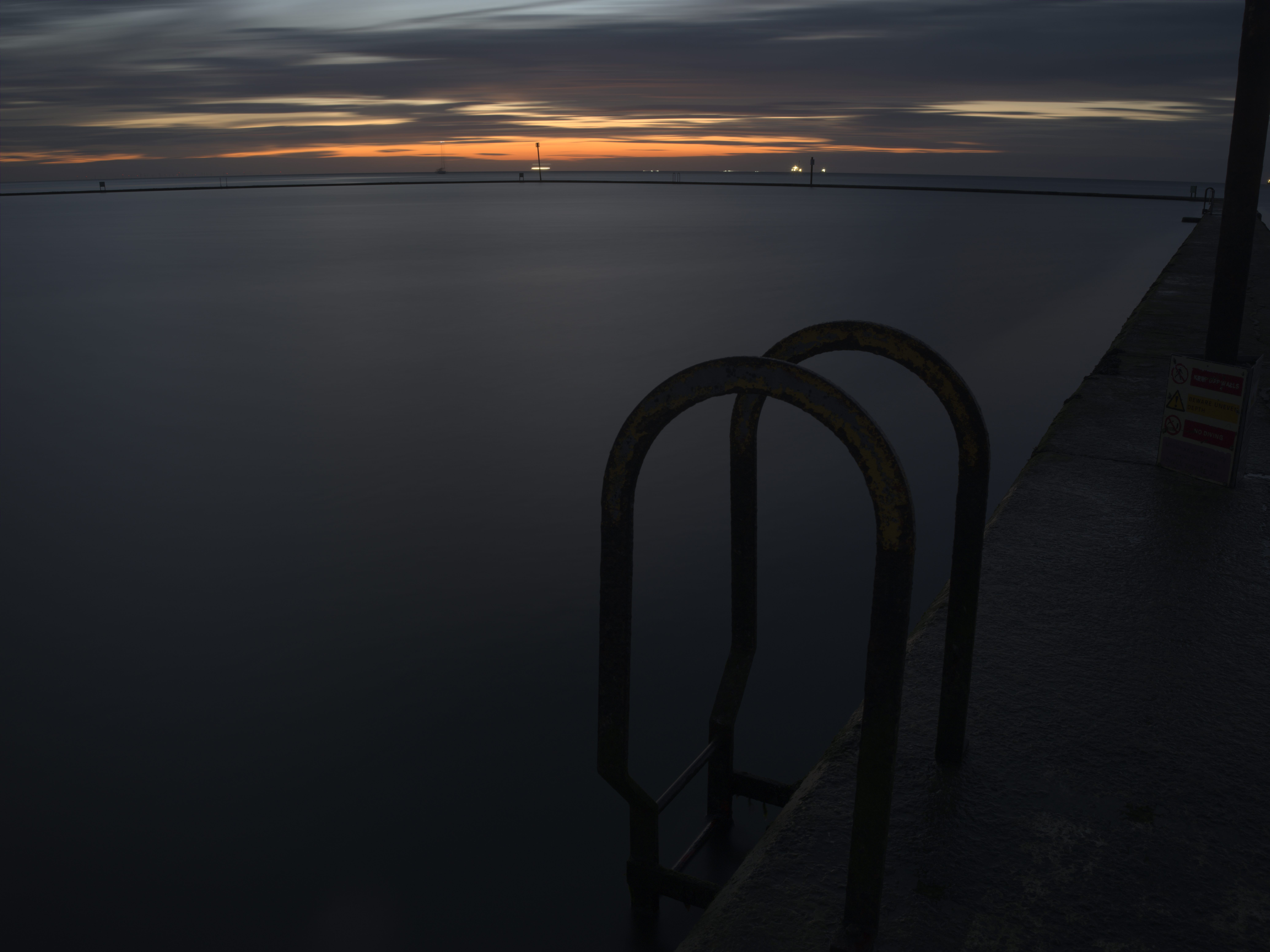 Plenty to chat about before we get to the image. I enjoyed another your little anecdotes about one of the rarely mentioned perils of long exposures that you shared with your original posting of this set. Some four years or so ago I posted a shot here that also featured the handrails on a ladder going over the edge of a jetty. A very different photo to yours but we used similar handrails in a similar way. I was dumb enough to think I could go down those steps and get a shot of the piles beneath the jetty with the water breaking into them. This was not a good idea as I discovered someway down the ladder. Your "feeling tottery" brought it all back.