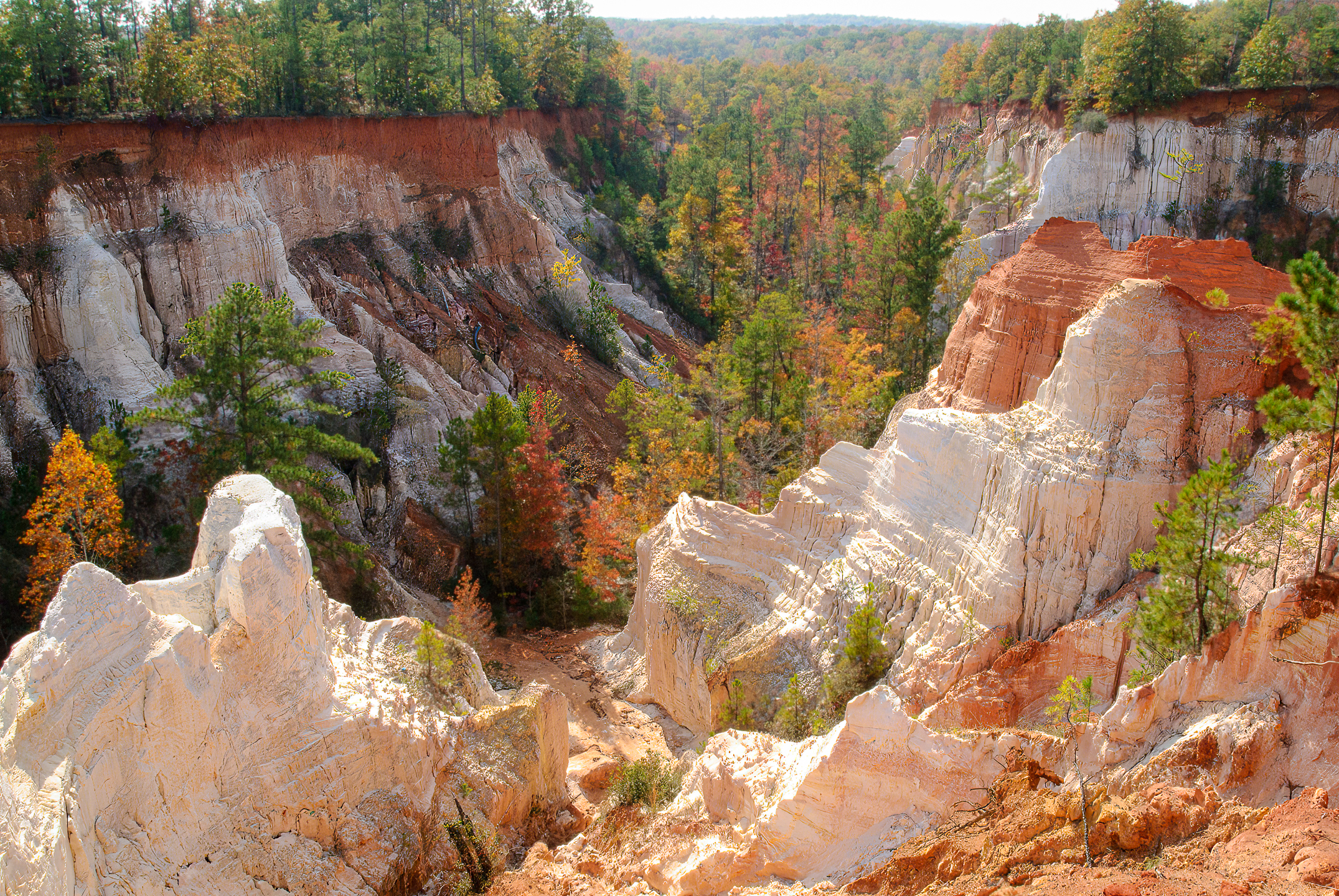 Really nice image of a place I'd never heard of, so I had to look it up. It looks like something you'd find in Colorado or Utah, not in Georgia, but we have a similar geologic anomaly here in Mississippi. The south has some very old geologic oddities that are smaller but also less visited and less known than the western ones. Love the colors and the angle that shows the canyon while also giving us a detailed closeup and a distant look at the formations.