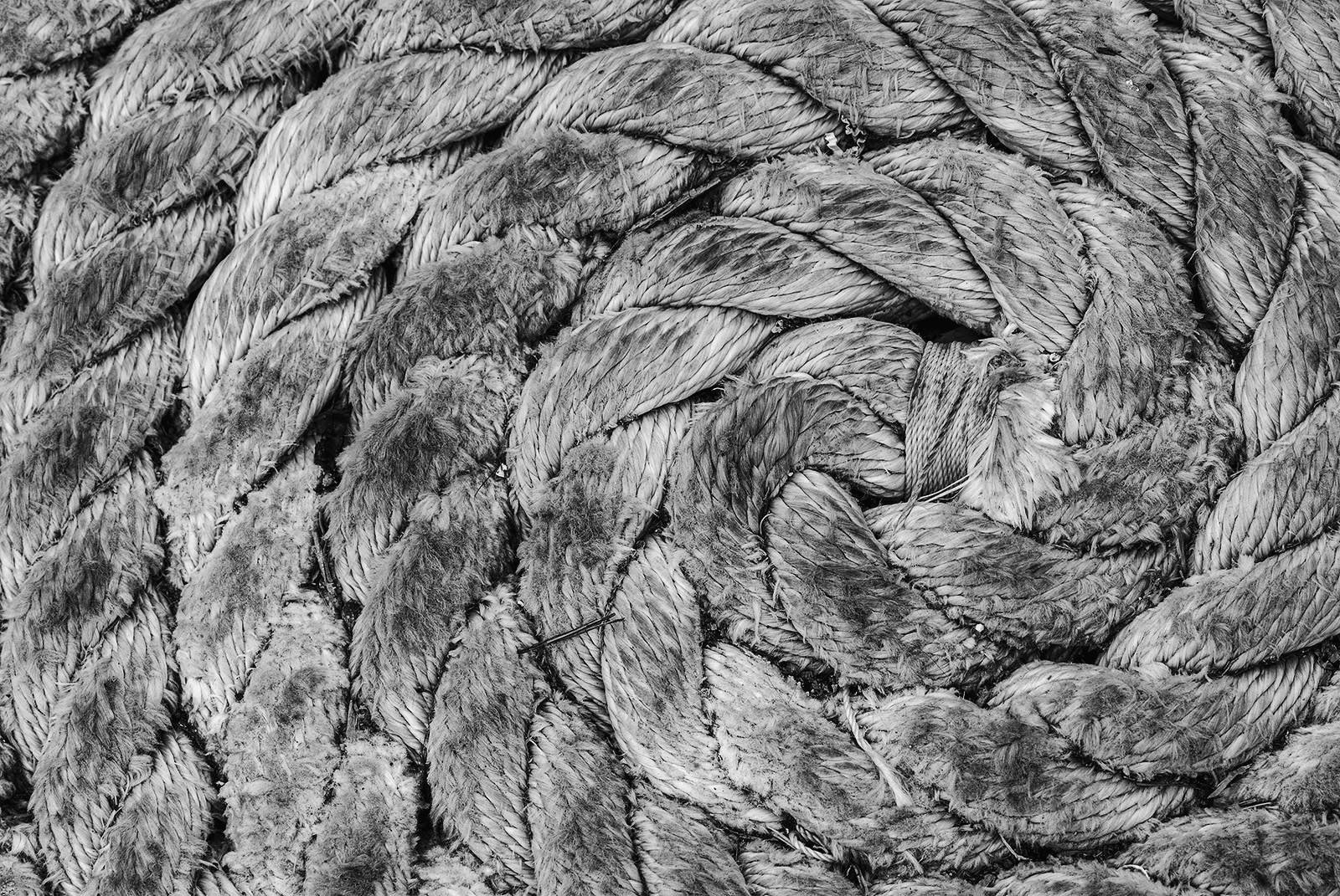 The image is high-key but it isn't lacking in full tonal range. My equipment is calibrated and, on my monitor, I'm confident it is the closest to the way the rope coil looked lying there on the dock in the blazing afternoon Molokai sun. It was bone dry and bleached bone white, undisturbed for at least several years of brutal ultraviolet rays. It may look different on a non-calibrated monitor.