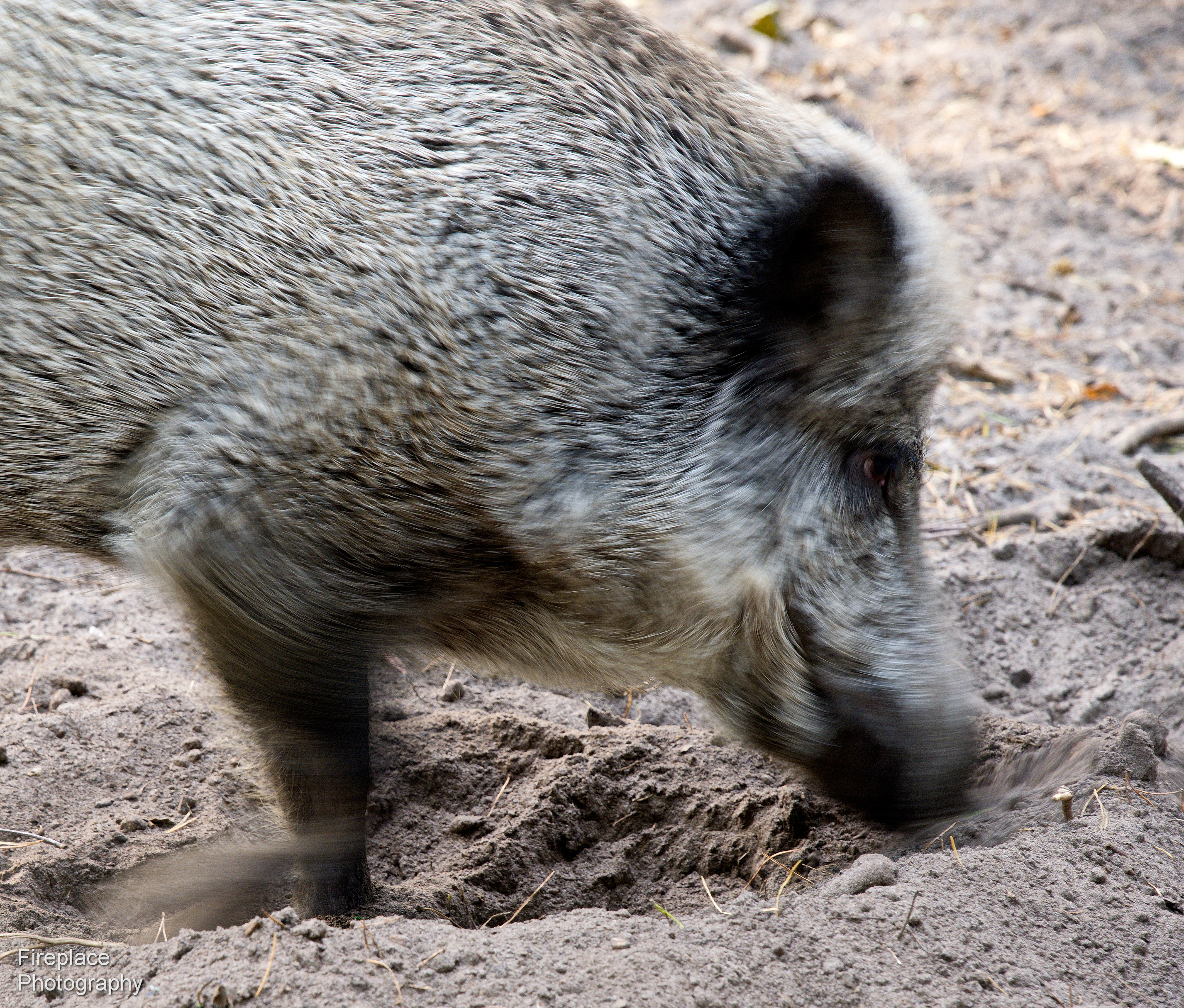 While walking on the trails we didn’t actually see any pigs “out in the wild”, but inside the park there’s also a Bison ranch and I got this action shot there, of a Boar digging around in a pen 😊