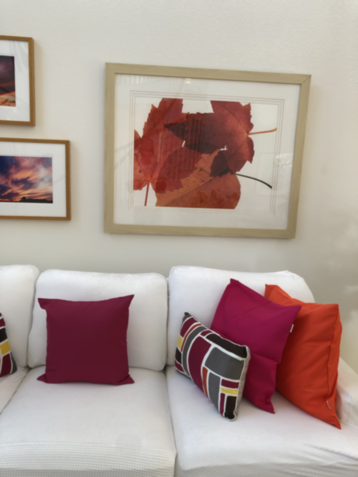 At first I overlapped the leaves as they appear here, but that didn't work well at all. They looked OK visually - I got the translucency/transparency I wanted for the single layer part, but where the leaves overlapped, they just became extremely dense and opaque. So I shot them individually and combined/overlapped them in Photoshop, each on its own layer, with the layer blending type set to "multiply." That gave me exactly what I had pre-visualized.