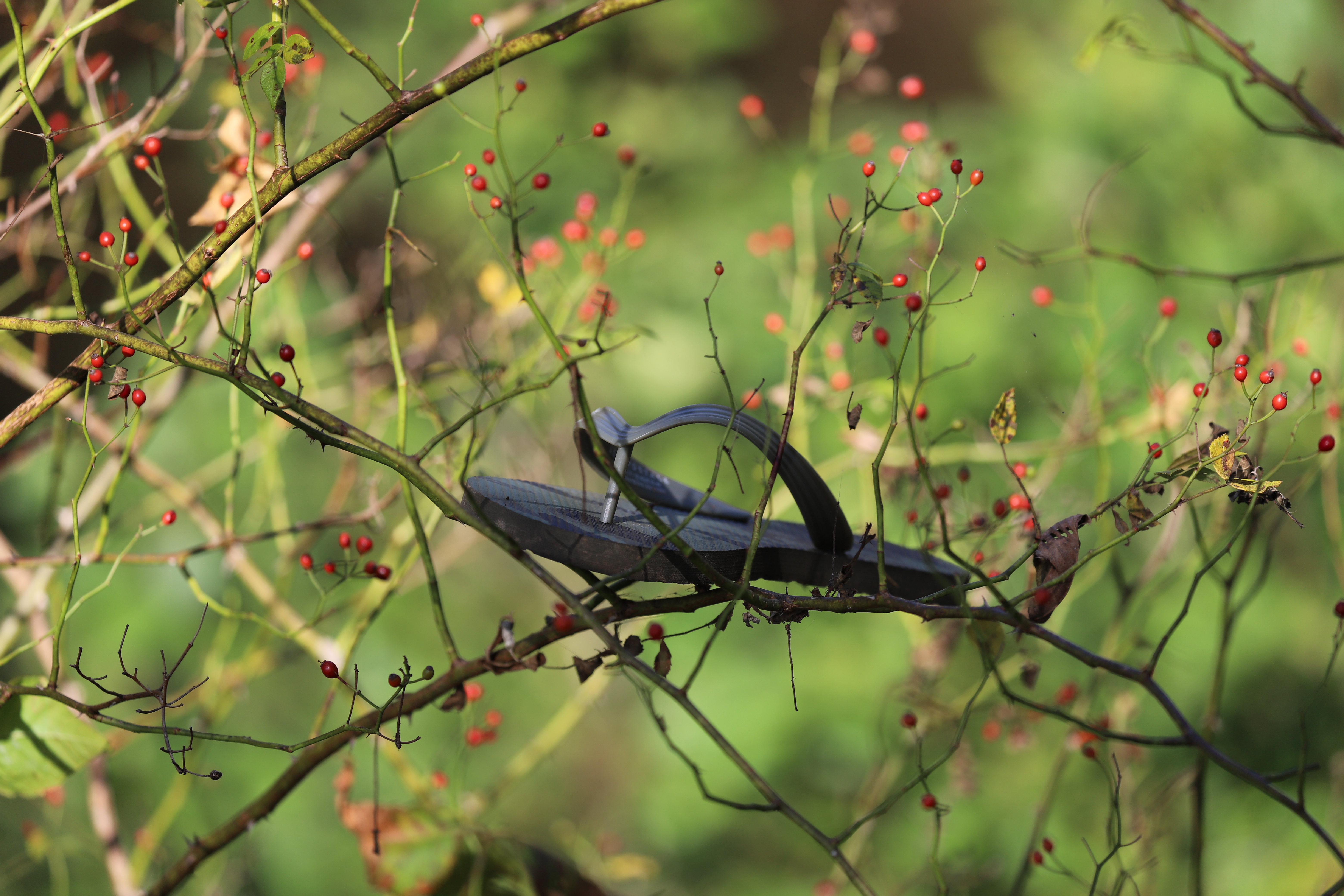 At first I overlapped the leaves as they appear here, but that didn't work well at all. They looked OK visually - I got the translucency/transparency I wanted for the single layer part, but where the leaves overlapped, they just became extremely dense and opaque. So I shot them individually and combined/overlapped them in Photoshop, each on its own layer, with the layer blending type set to "multiply." That gave me exactly what I had pre-visualized.