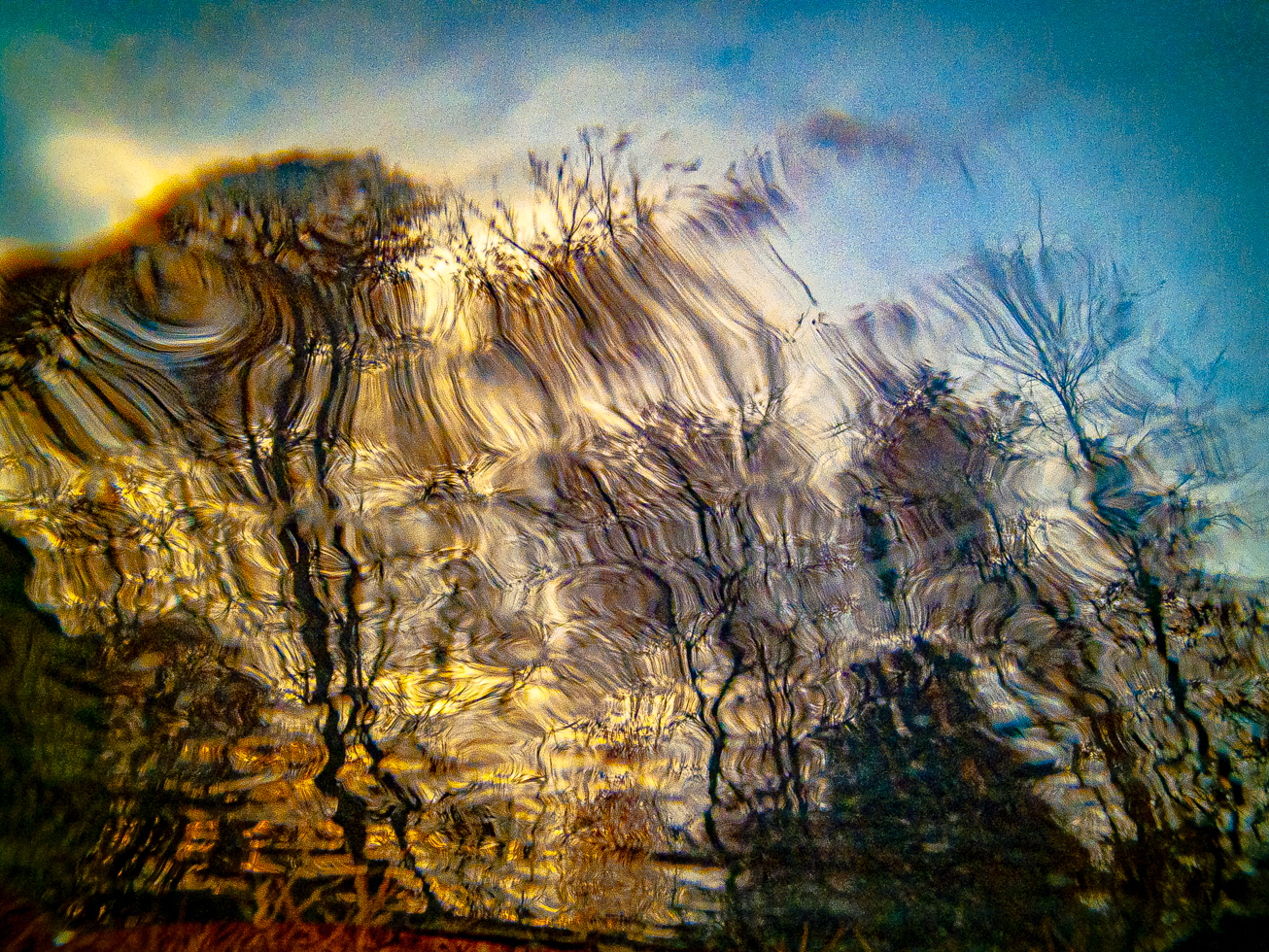 The gem-like yellow and red colors make this a standout for me. I have a slightly similar look from a tree reflection in rippling water. Flipped upside down per MinnieV's suggestion years ago. Mine was mostly mono to begin with. Yours, whether colors are introduced or were there, has far more impact.