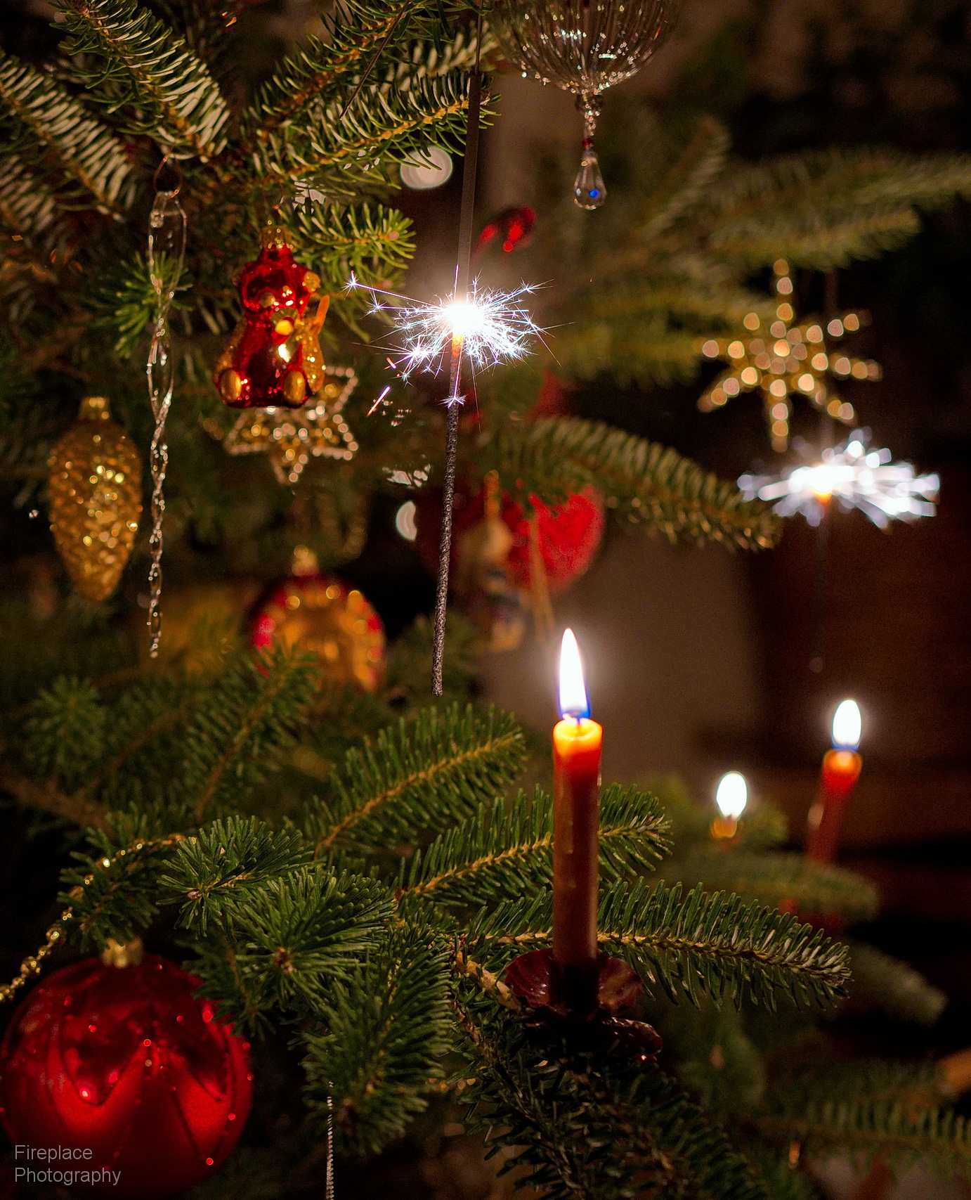 We watch our tree carefully while the candles and sparklers are burning and have a fire extinguisher at the ready, just in case :-)