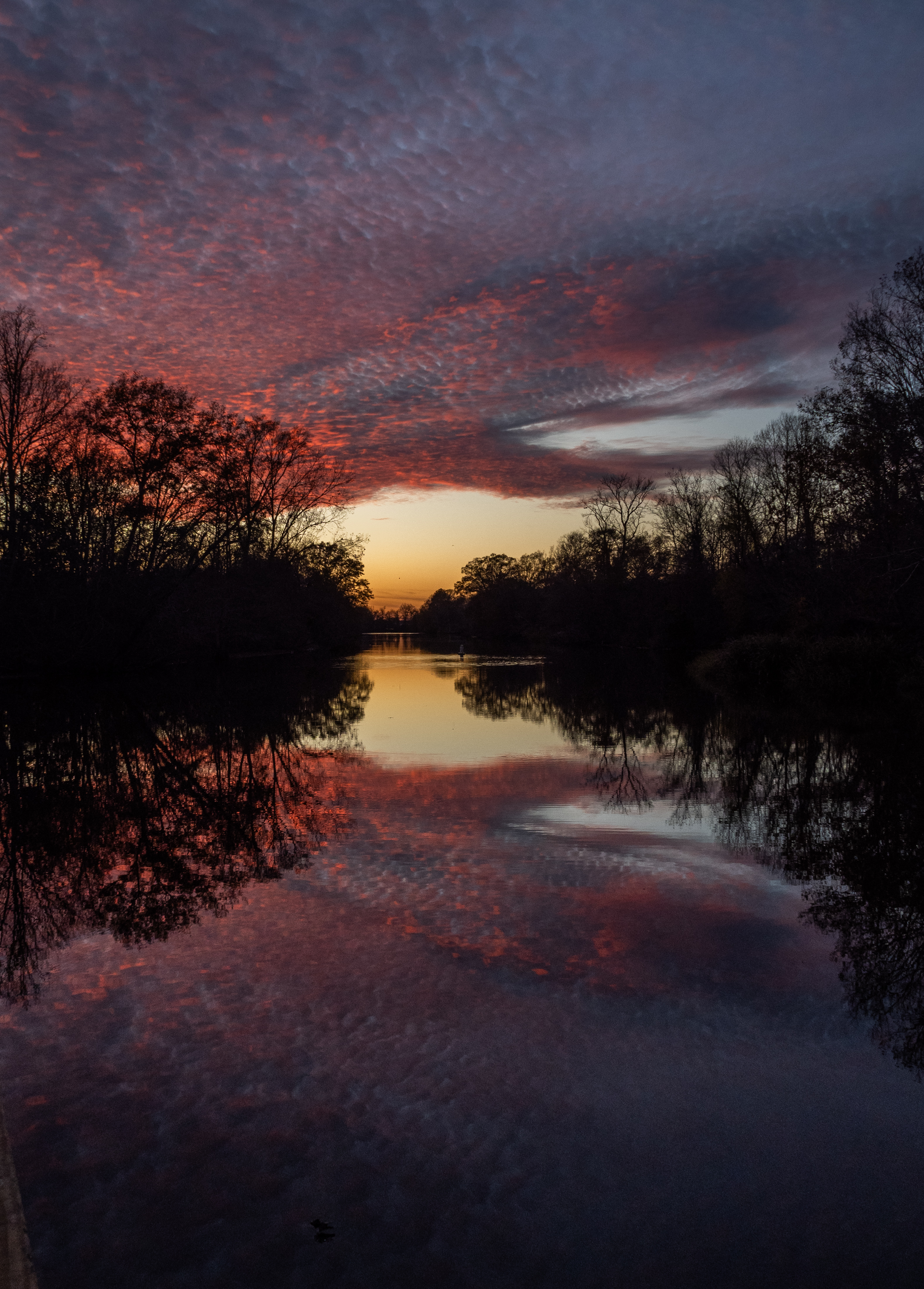 Sometimes nature throws you a surprise party and you really aren't prepared for it. I was headed home from my son's house when I saw this sky developing just after the sun set. I had camera but wrong lens, pulled off in a scruffy little fishing area I visit often but which didn't have the angle I needed and there was no time to find another place.
