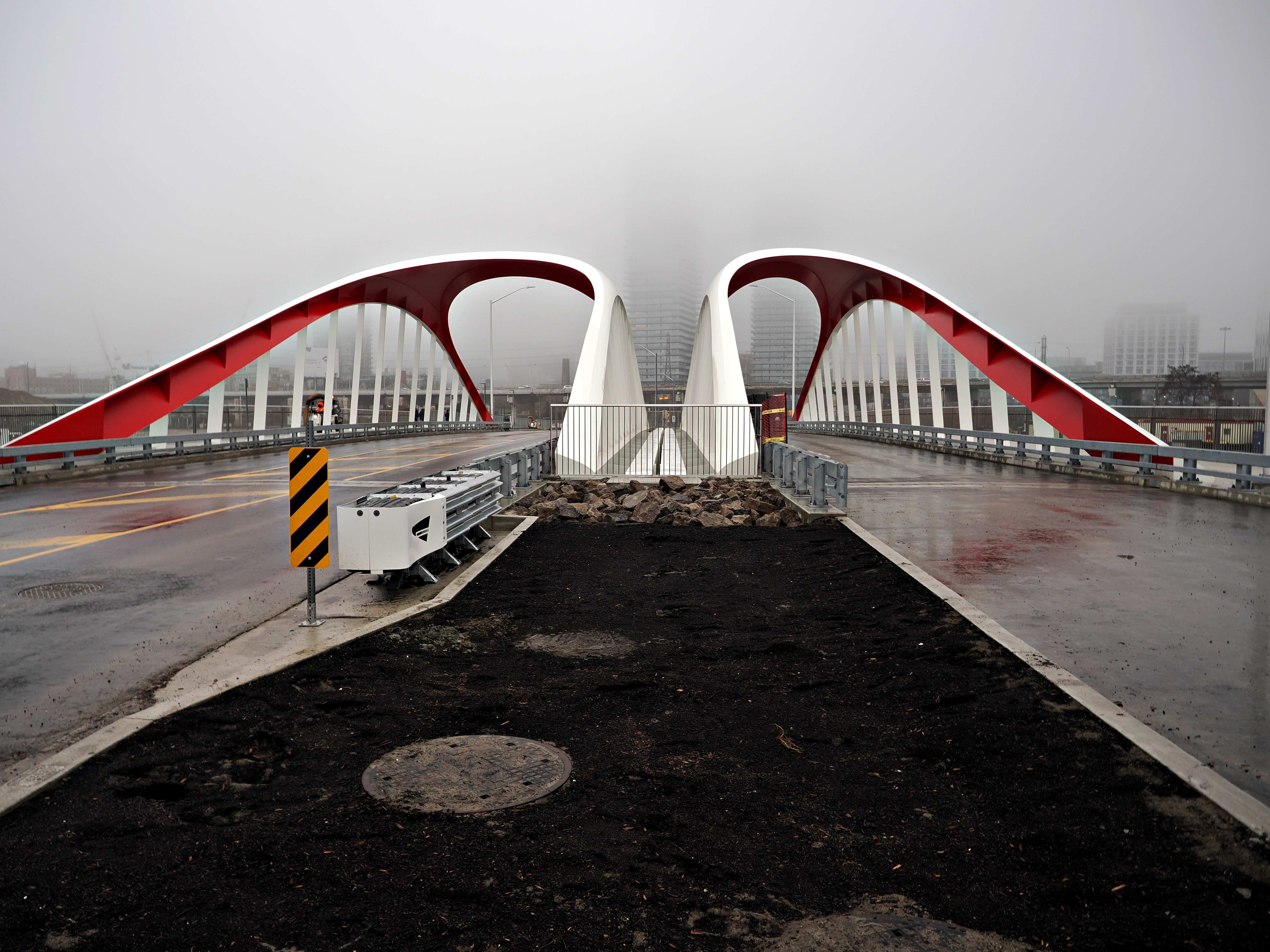 Agreement between municipal, provincial and federal governments resulted in creation of a massive $1.5 B flood control project where Don river meets Lake Ontario. In order to facilitate grand landscape development 3 sets of bridges were constructed. Designed in UK, engineered in Germany, manufactured in Holland, assembled in Nova Scotia and brought on barges to Toronto for final installation. There is still a lot of construction around, but bridges are open to vehicular traffic, walkers, runners and bikers. I could have spent hours there, but I think return trip in better weather is a must.