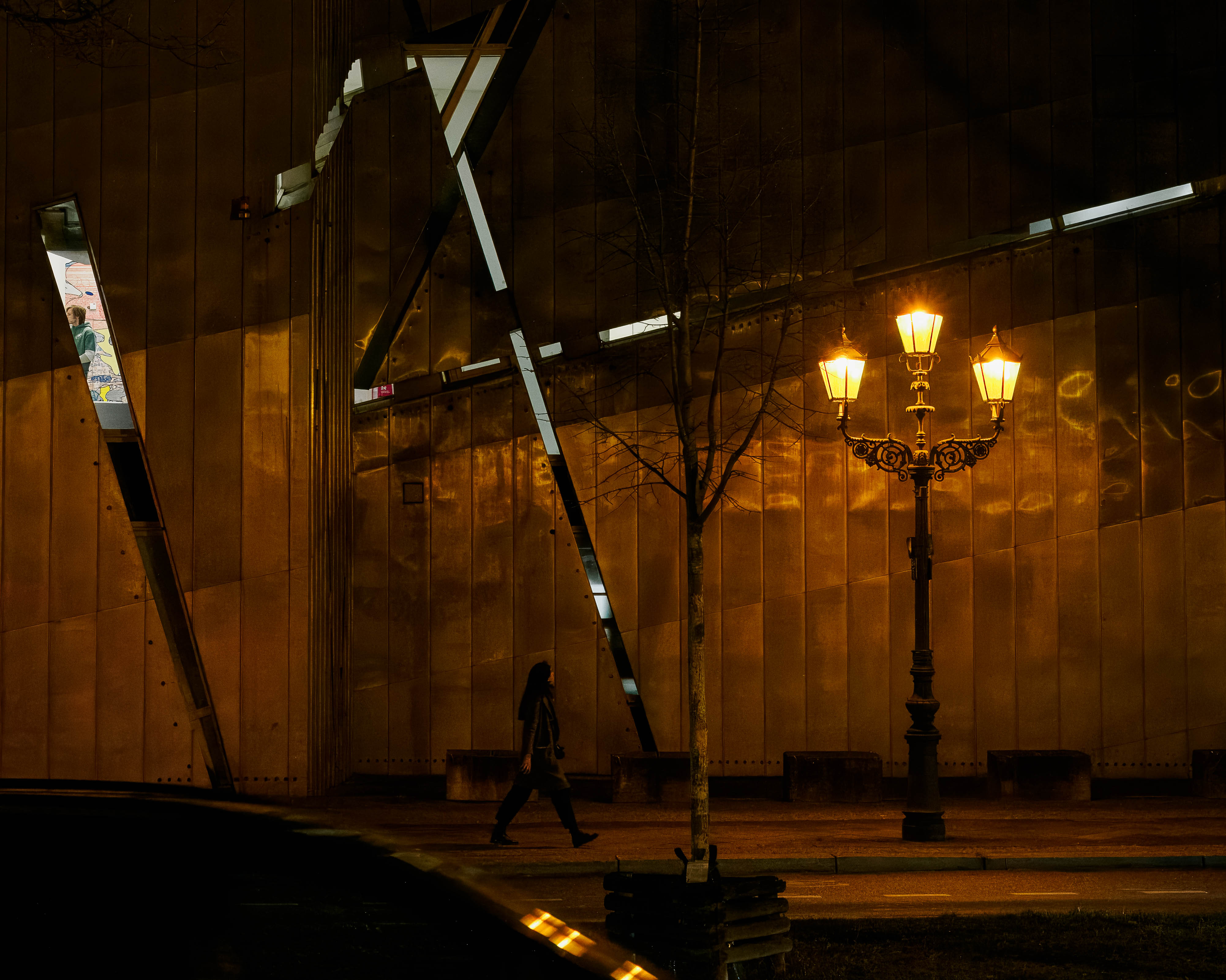 A dark street in Berlin. Actually, I've just got back from Berlin, but this was taken a year ago.