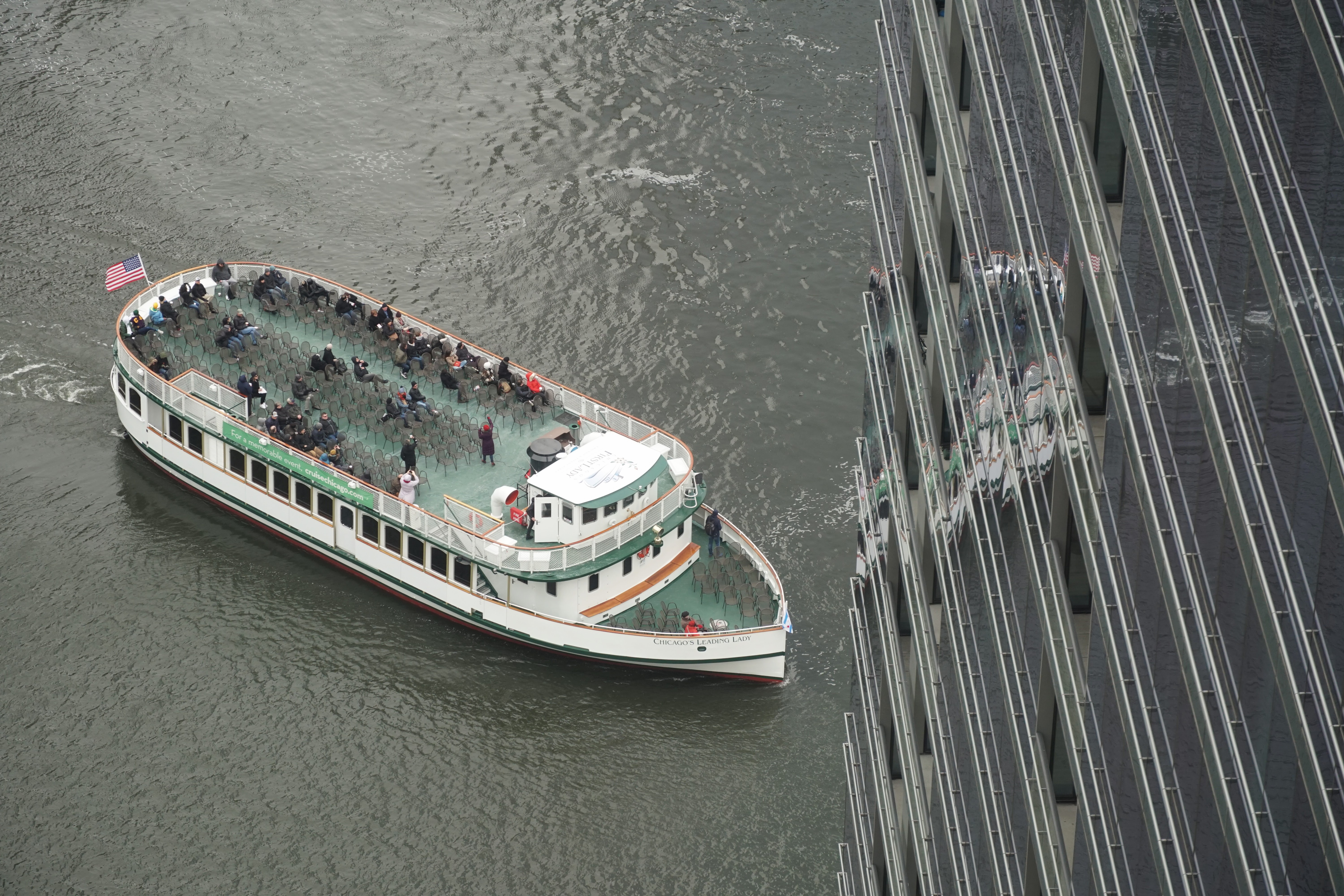 I like it - it's an interesting image because of the lines introduced by the buildings. I wasn't sure what it was at first and it almost feels like there's some distortion setting in, something deconstructing the rest of the image... and the ship is in danger of being affected as well. I would absolutely try to play with different looks in terms of color grading and also include B&W to see where it works best... my bet is on some B&W look with relatively strong contrast, but that's just a feeling. Great shot!
