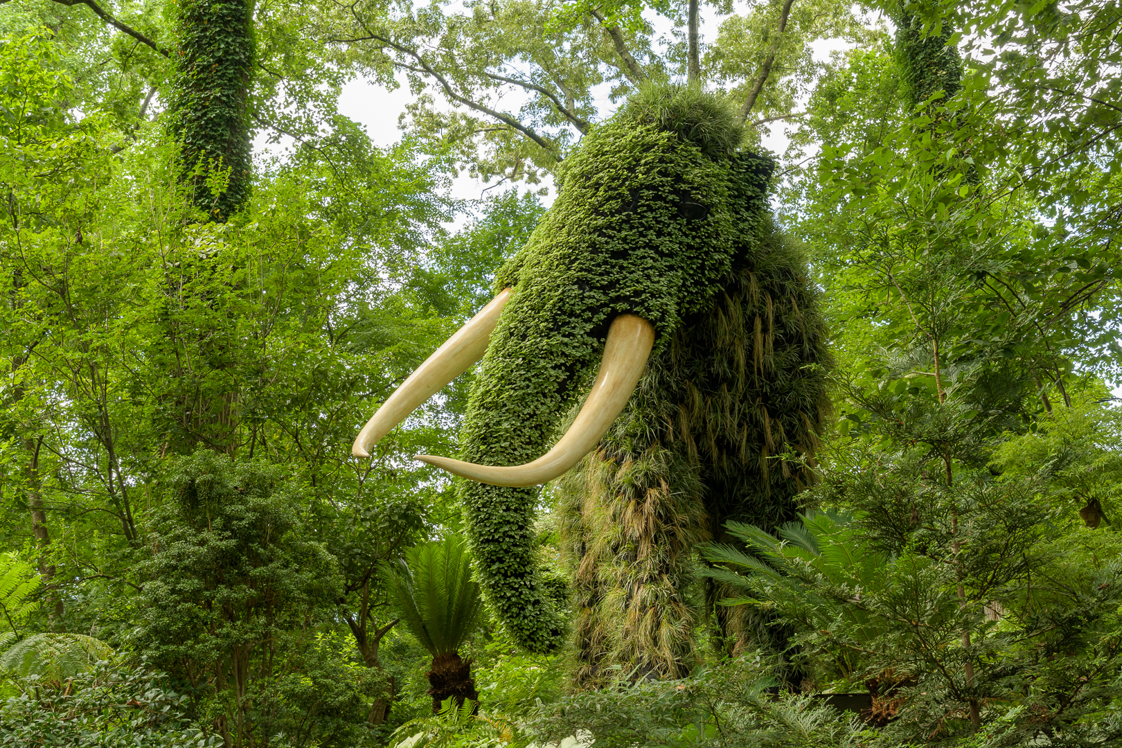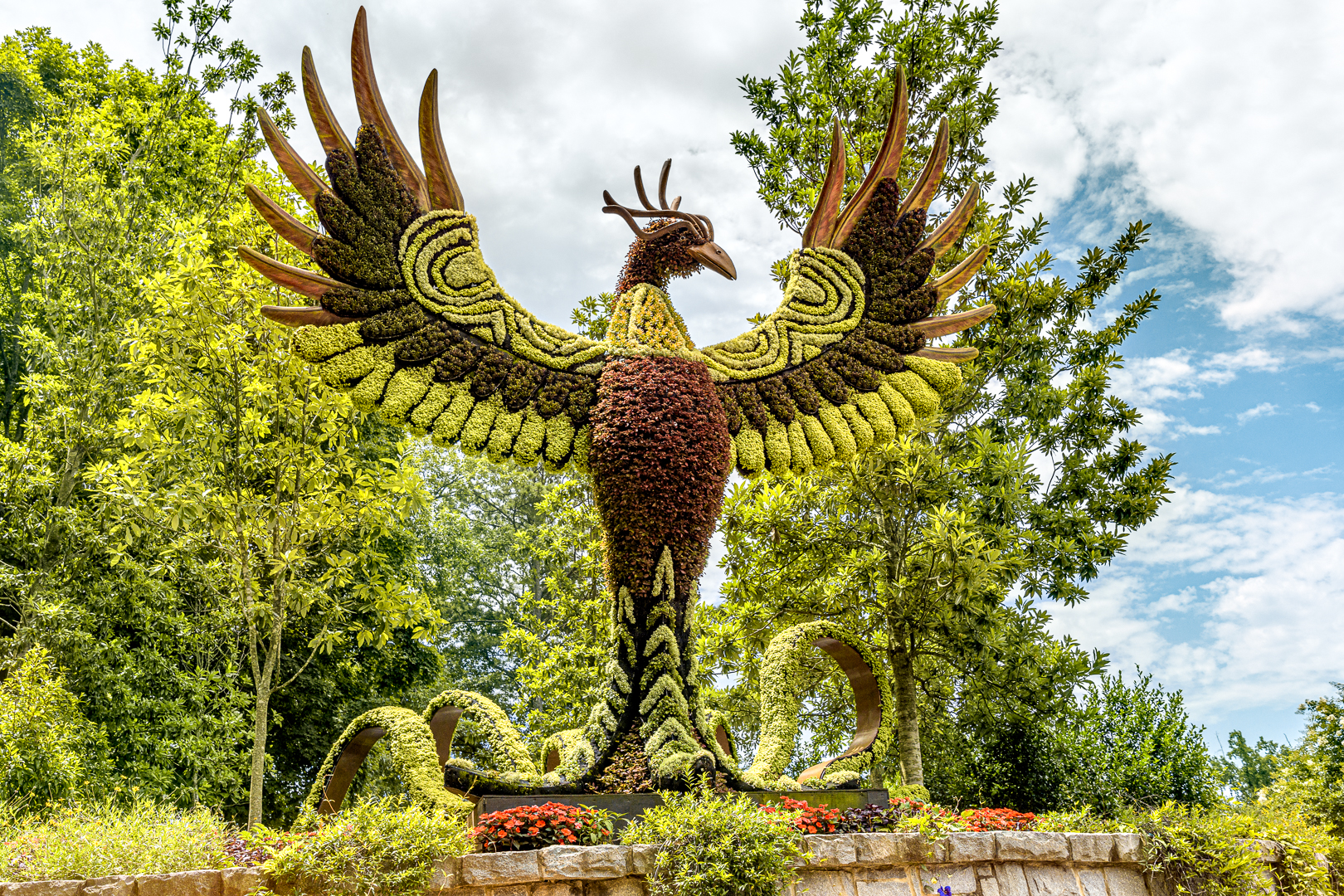 There's a satisfying greenness that dominates everything. I like your selection of angle that makes it clear that we have plants growing on the top of and beneath the overhanging wings. A neat gardening trick. The dragon engages by looking directly at us. Perhaps he's friendly? Perhaps?