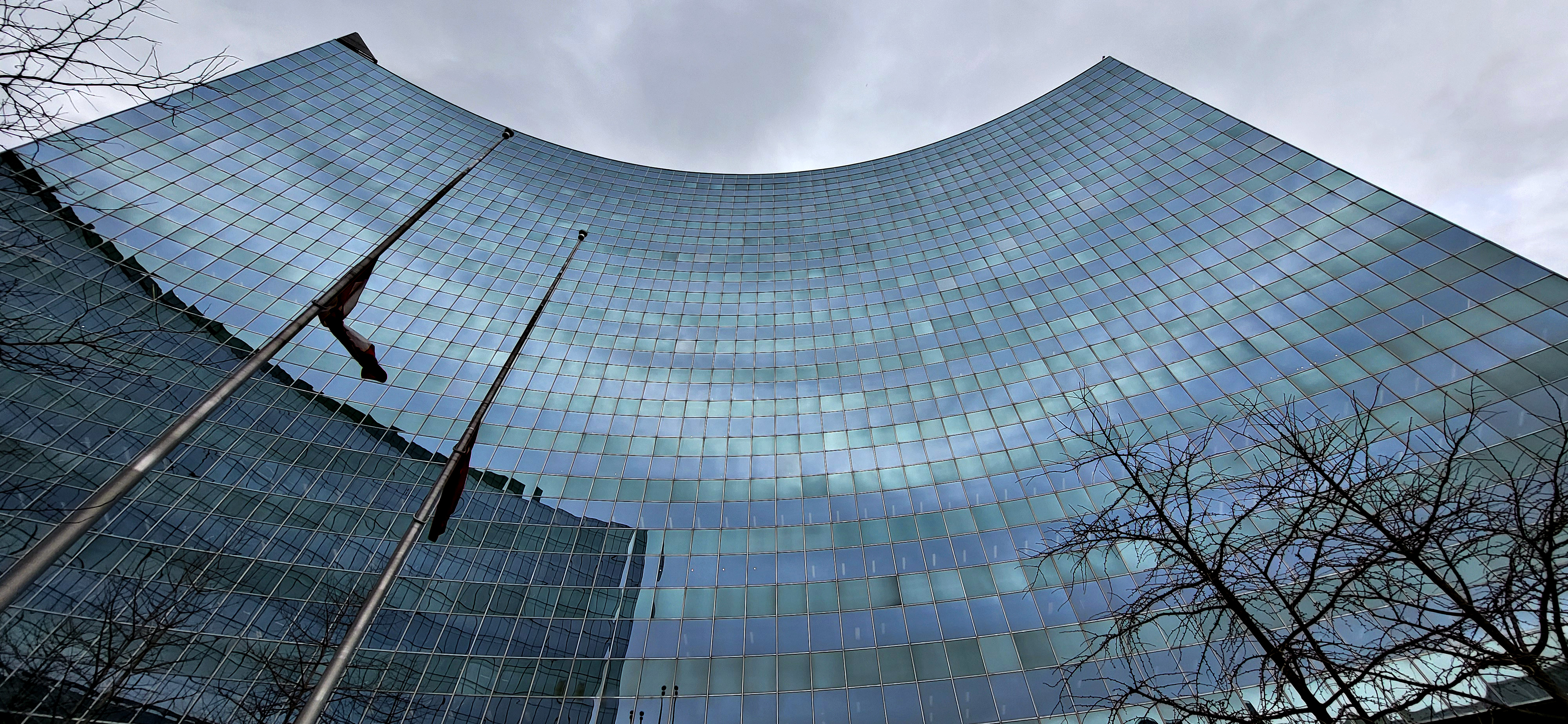 The greys of the sky and the blue greys of the building merge into a whole. I think this might work better than a building contrasting with a blue sky. Perhaps?
