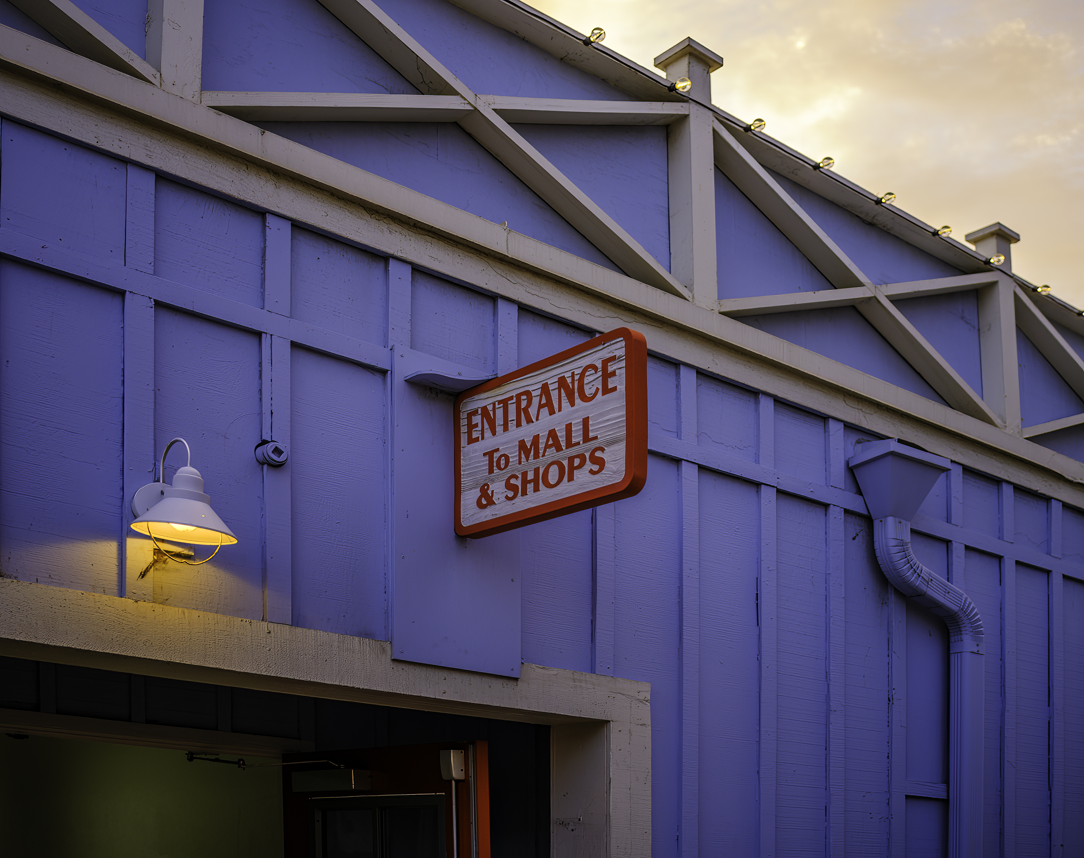 This is yet another quiet little unpretentious scene, which would normally be overlooked, but which works so well. The lines combine well and the colours are delicious, as too is the mixture of warm artifical light with warm natural light. The sign is all we see to tell us what this is, and the hint of an open door entices our mind's eye to enter and imagine what could be inside.