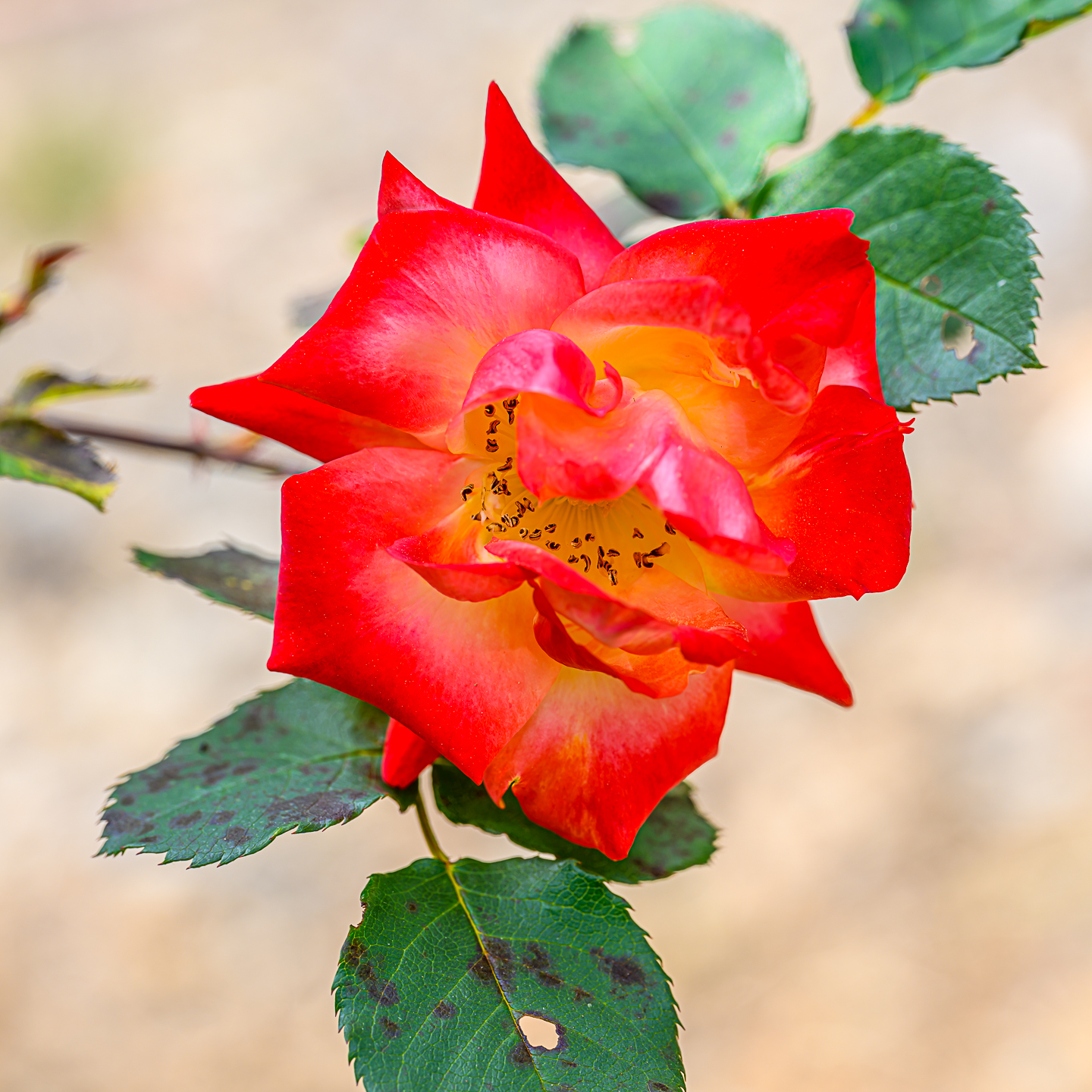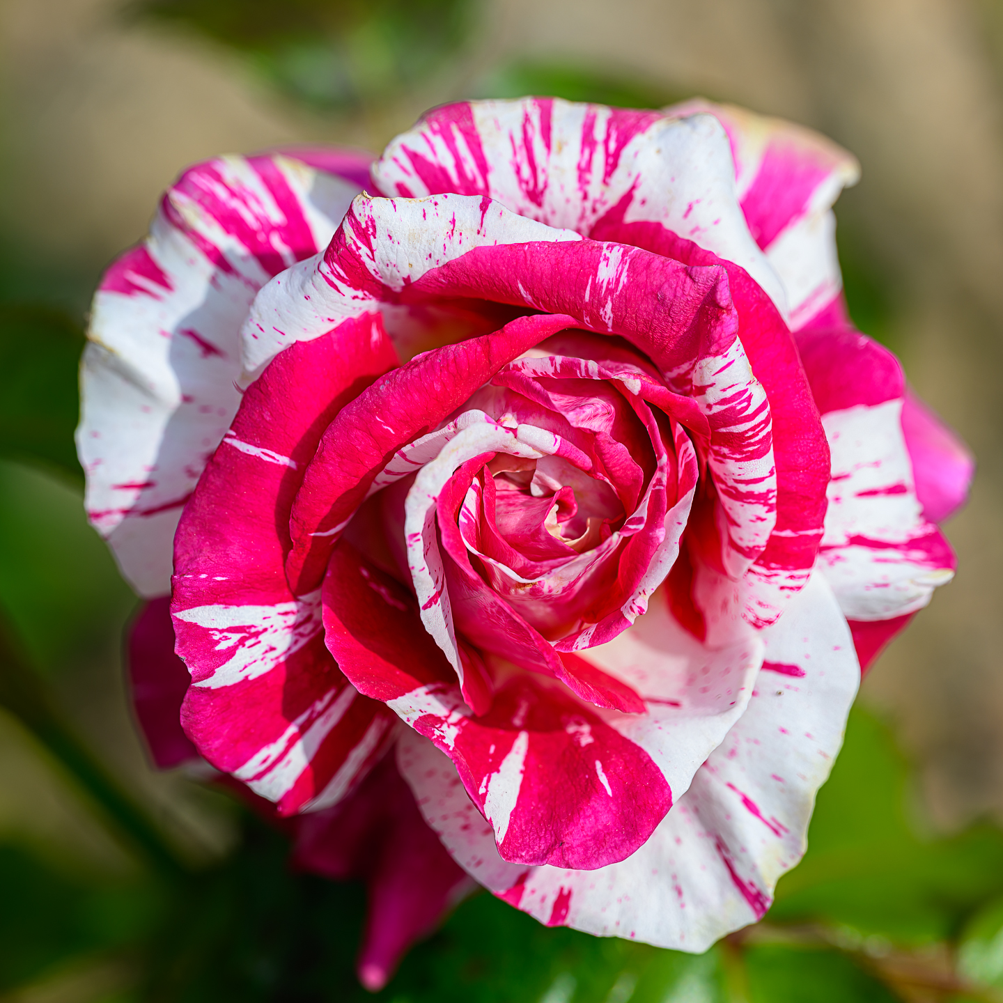 Three lovely spring rose blooms in glorious color and detail, with beautifully unfocused backgrounds. The middle one is my favorite even though it is not technically the strongest due to slight loss of focus in the middle/top petals; the colors are so beautiful, the contrast with the background so interesting, and there's that wonderful little hole in the speckled leaf. Thanks for a lovely set.