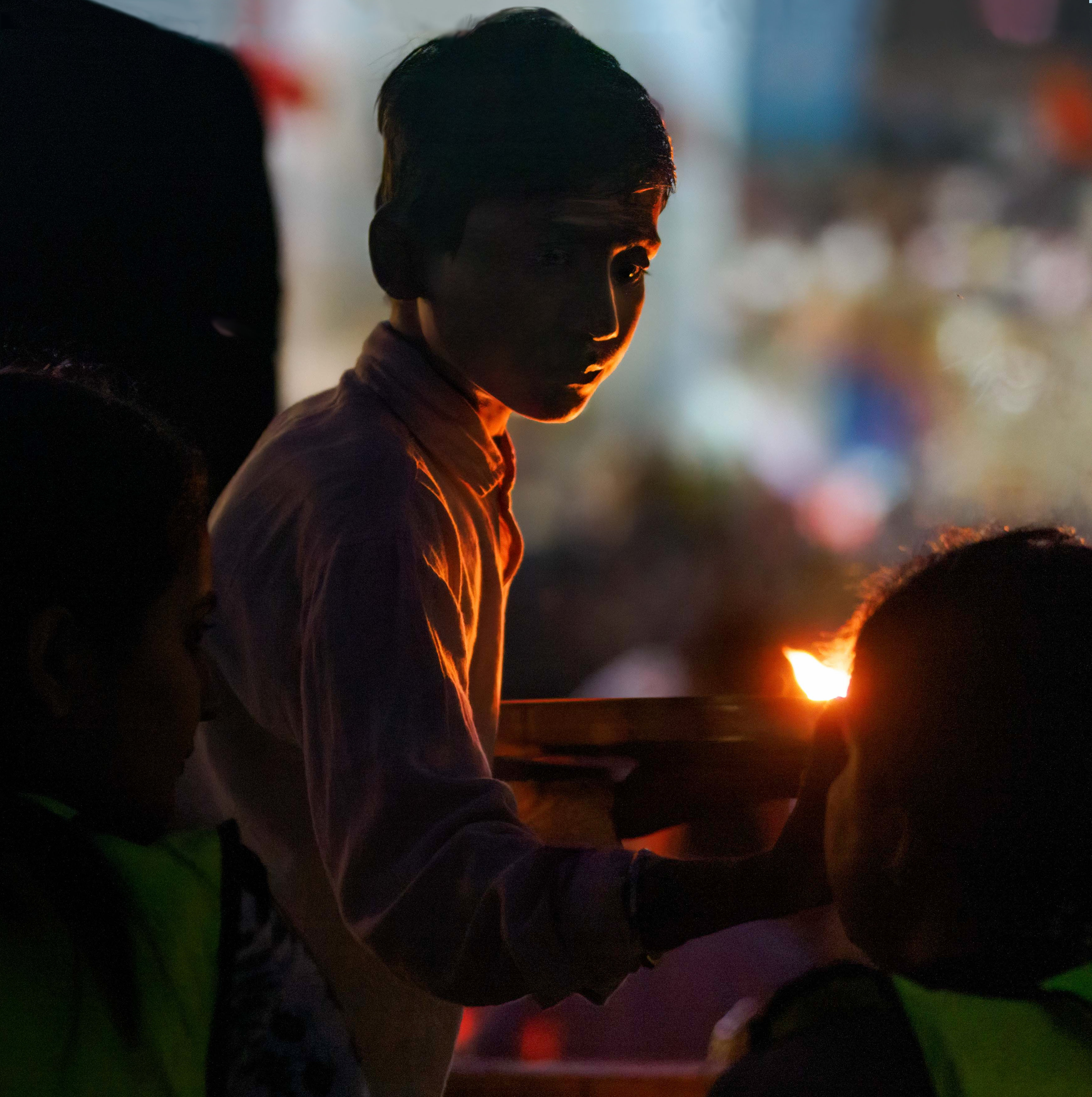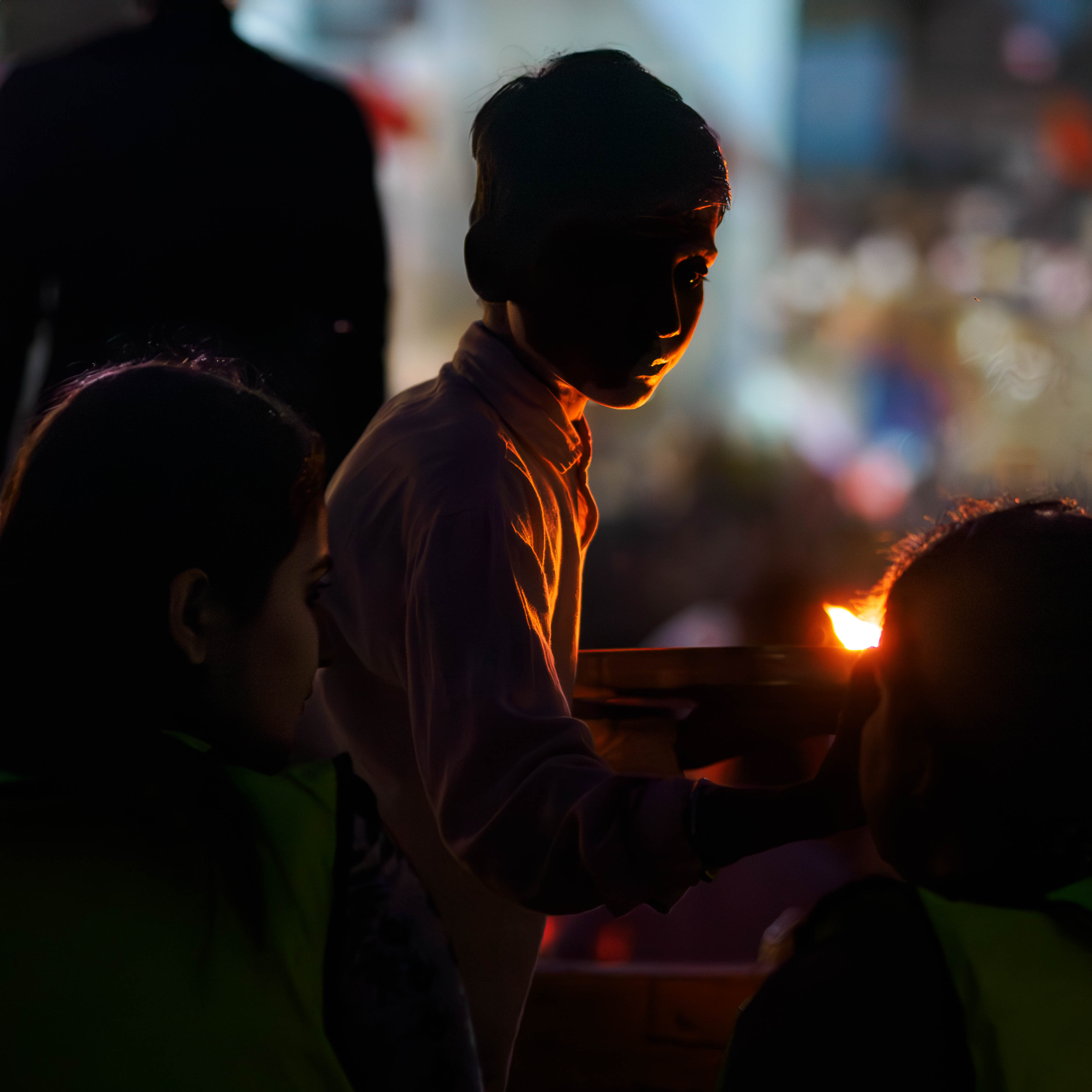 This photo is quite exceptional to me as, although there is not a lot of illumination, the boy's partially lit face is enough to show a gentle softness - solemnity, in his demeanor. Also enough to show the geru colour of his shirt.