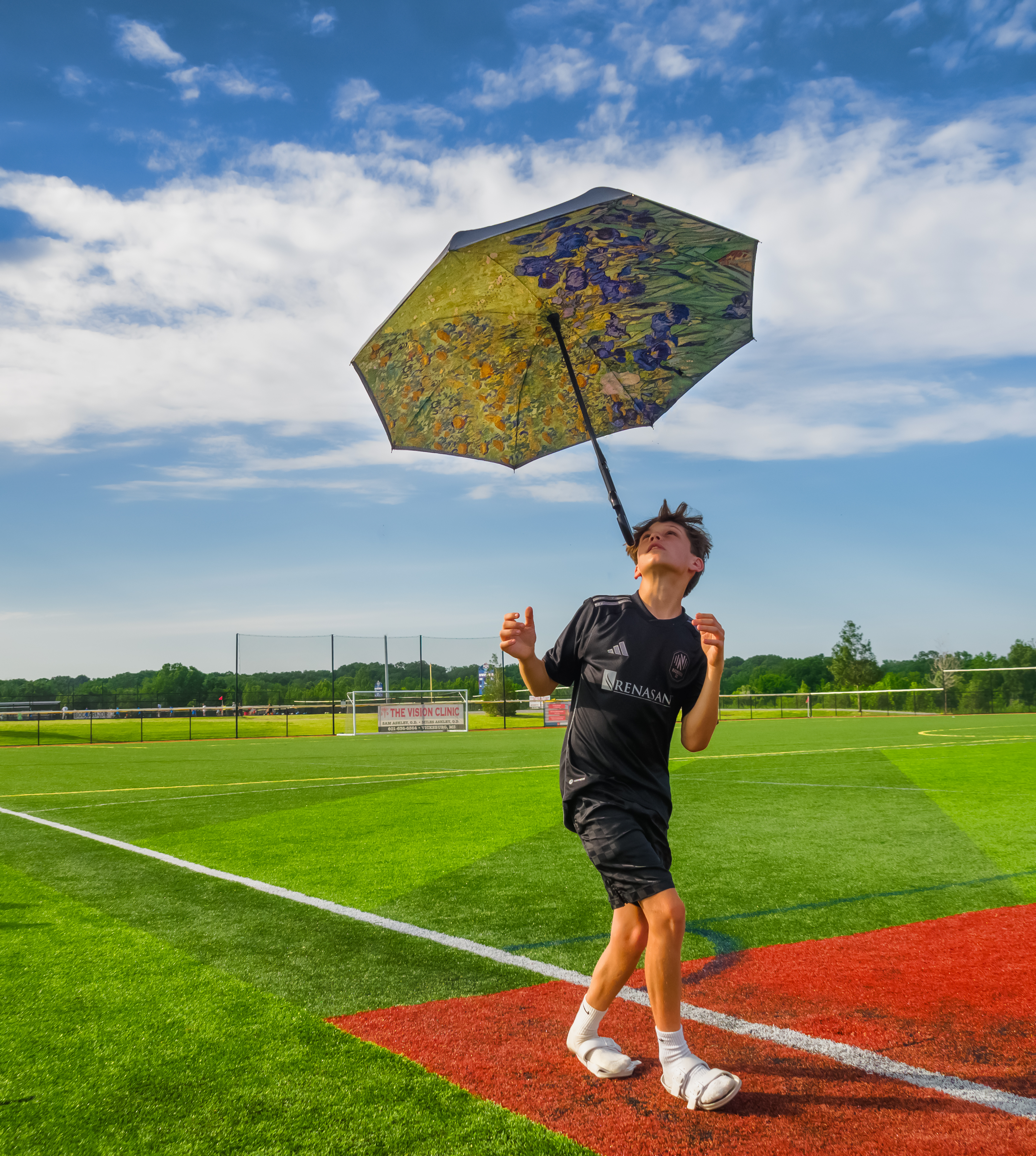 Candid shot of grandson Jack balancing my umbrella on his head, between soccer games Saturday. No great story or intent, I just liked it.