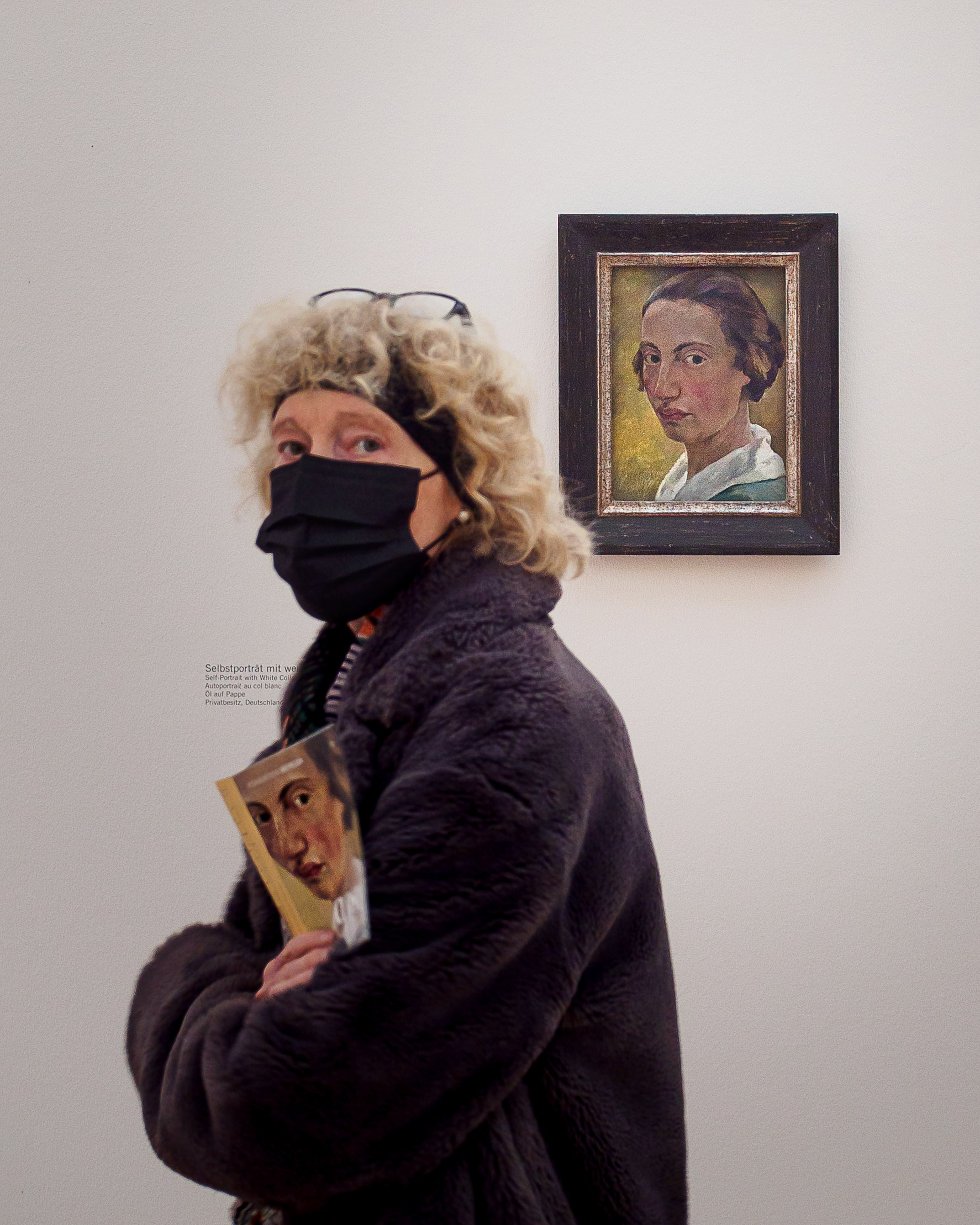 In this case I had just photographed the painting with the artist's name, Lotte Laserstein, for reference, and set myself up to capture one or more viewers looking at the painting and the painting looking straight past them. But then serendipity had a much better idea!