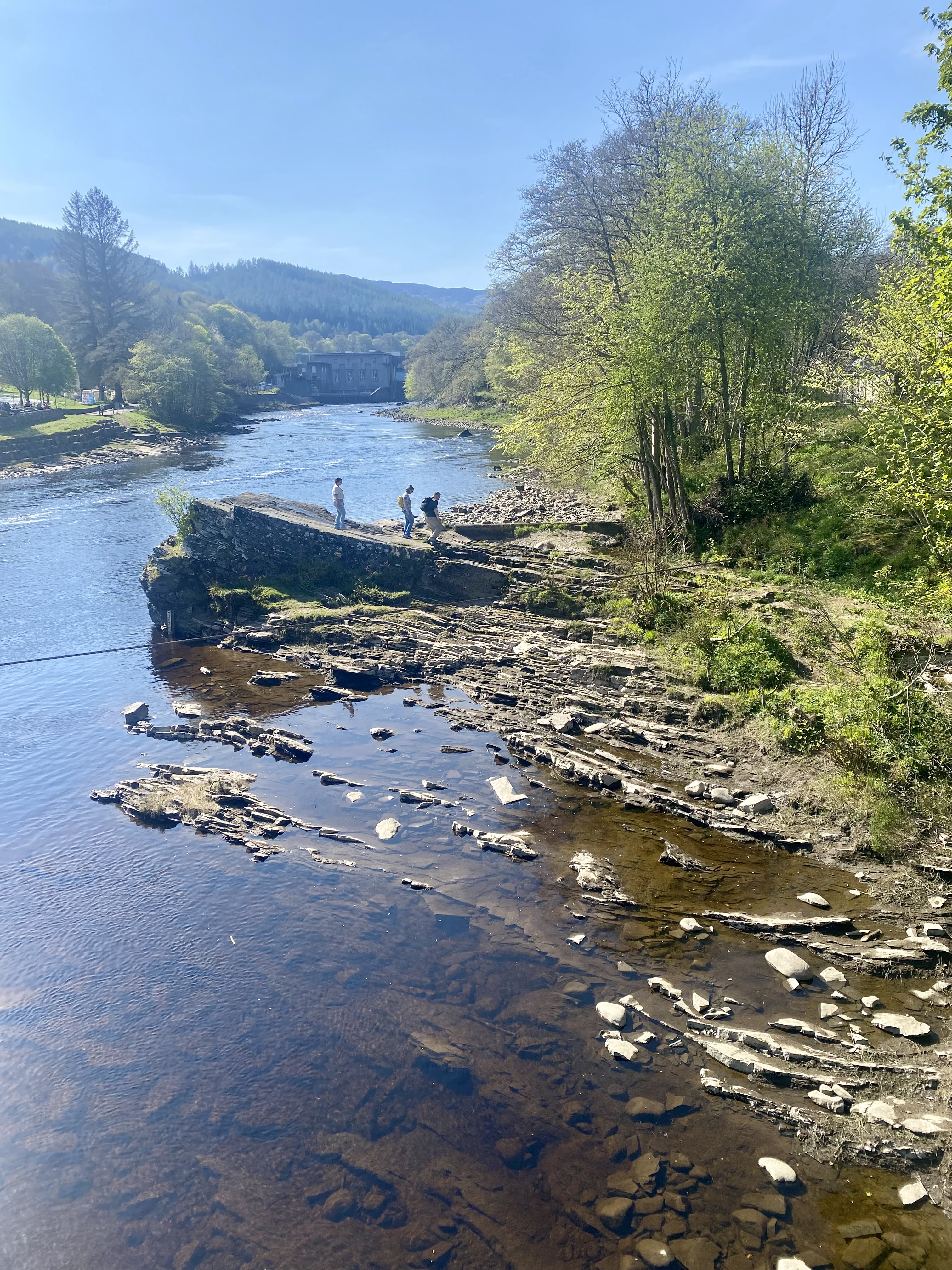 This is in Pitlochry, on the river (Spey?) where a huge hydropower dam with a fish ladder for migrating salmon is situated. This is just downstream from that dam.