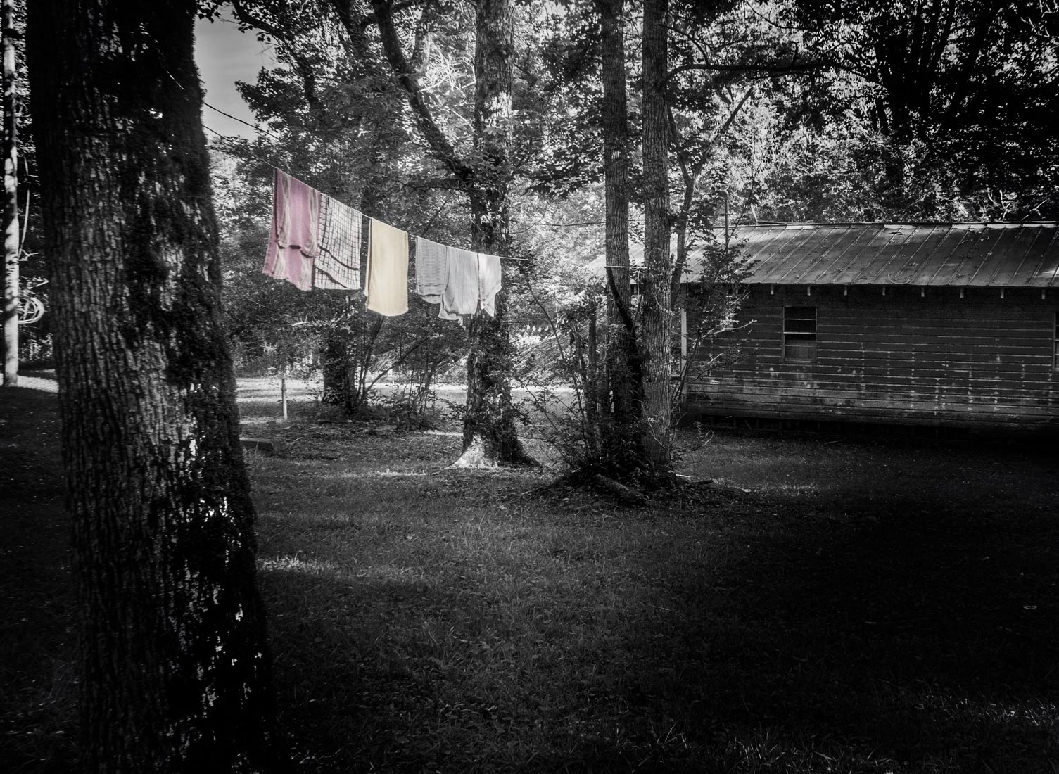 Sometimes you, but not necessarily everyone, have to have colour. B&W would not have worked here for everyone. Interesting because the red and yellow towels make up a very small area of the image but they possibly lift everything or somethings. They give the line (pun alert) that connects the foreground tree to the cabin. They bring life and meaning but not necessarily for everyone. The place lives but not necessarily for everyone. Subconsciously we but not necessarily everyone fill in and generate questions possibly about the people who perhaps live here. The colours, being bright, make us but not necessarily everyone, feel good about them or something .
