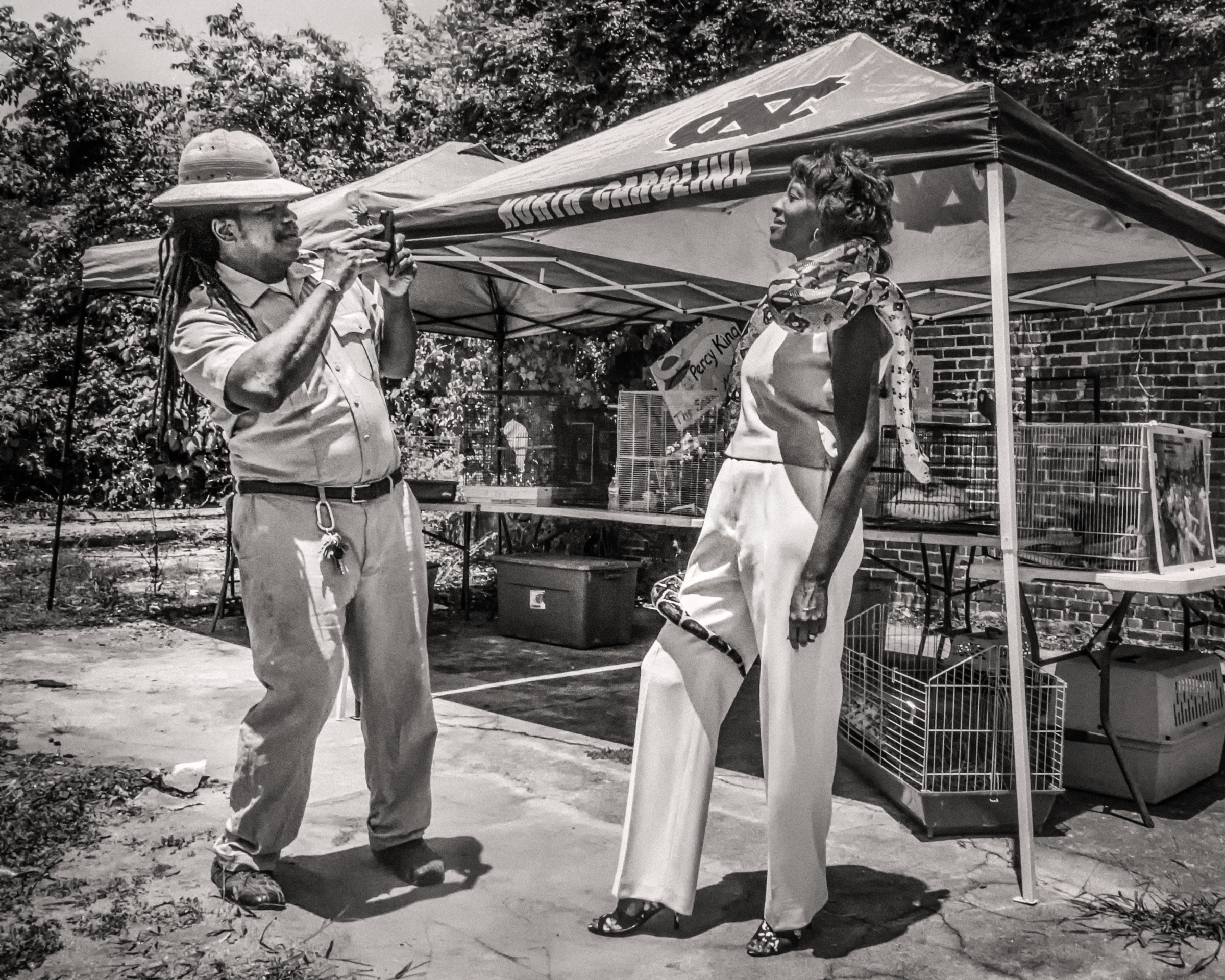 Mr. Percy In His Best Form - From the archives. My grandson asked me recently about Mr. Percy, the gentleman in the photo, who was a fixture around our area. Mr. Percy was retired from his job as zookeeper, had a shelter for unwanted exotic animals and took them to visit local schools to introduce kids to these animals and warn about getting pets you can't care for. Unfortunately Mr. Percy was murdered in a robbery attempt as he came home from an event about 5 years ago. I had never told my grandson who was too young to understand at the time. Now 12, he was still shocked that anyone would murder such a kind man. We pulled up my old photos from this small town political rally for us to talk about. This was one of them, a candid of Mr. Percy taking a phone shot of one of the candidates wearing his snake.