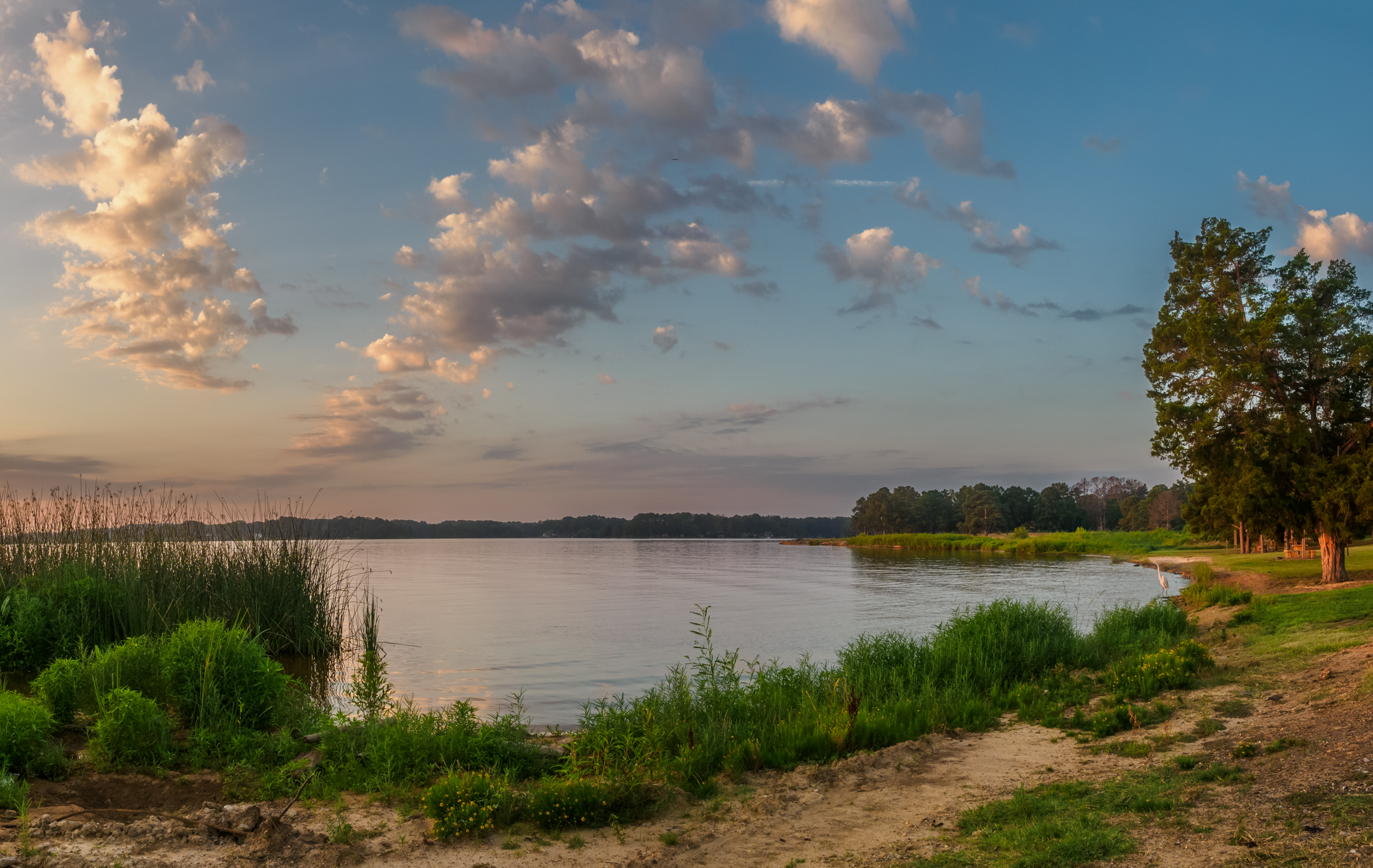 A 2 shot early morning panorama of pretty much nothing at the local lake. Foreground is sorrowfully kind of ugly due to ongoing dredge work but the clouds were nice.