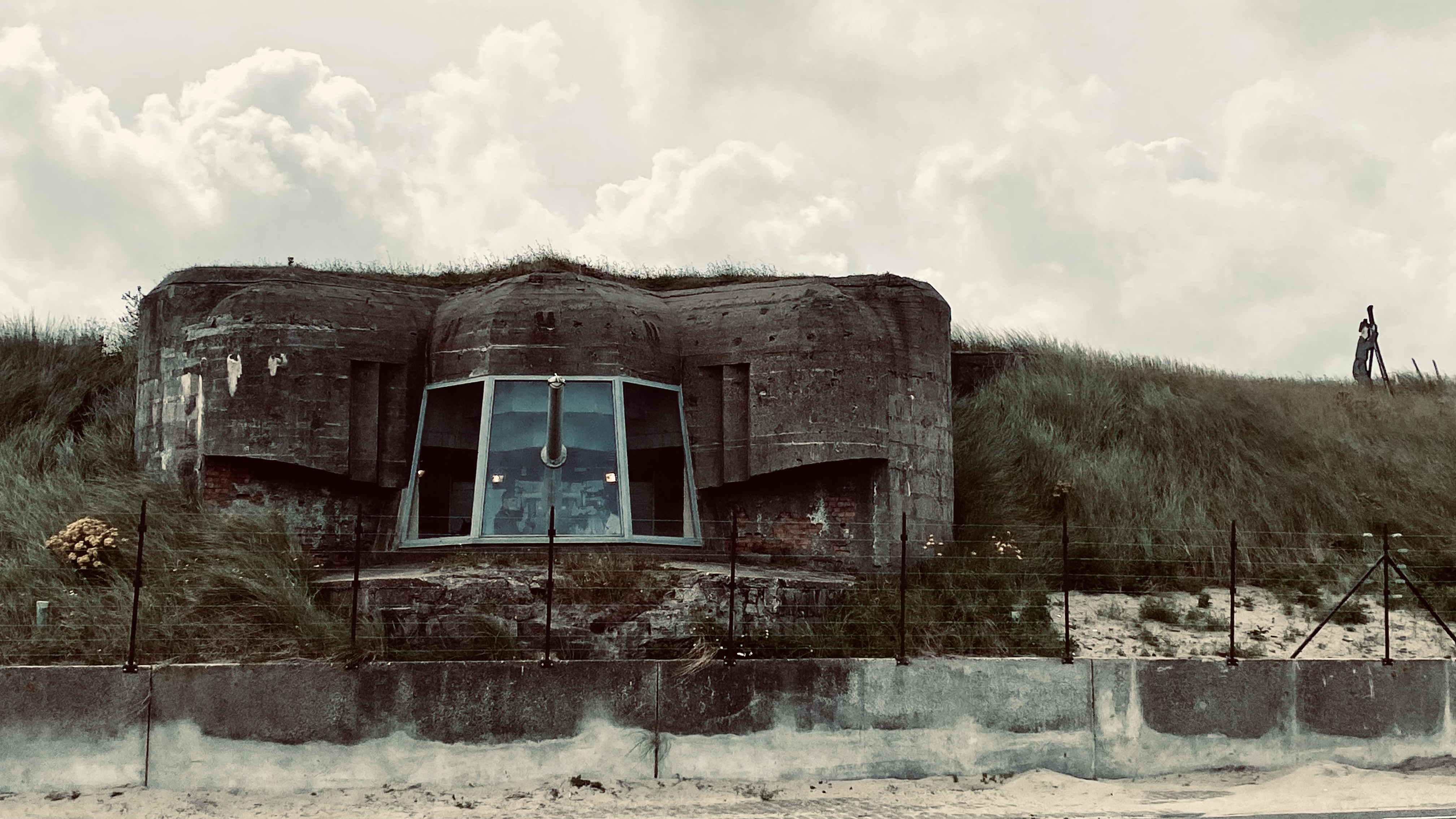 The views show these bunkers as seen from the road and bike path that now run between those fortifications in the dunes and the actual beach.